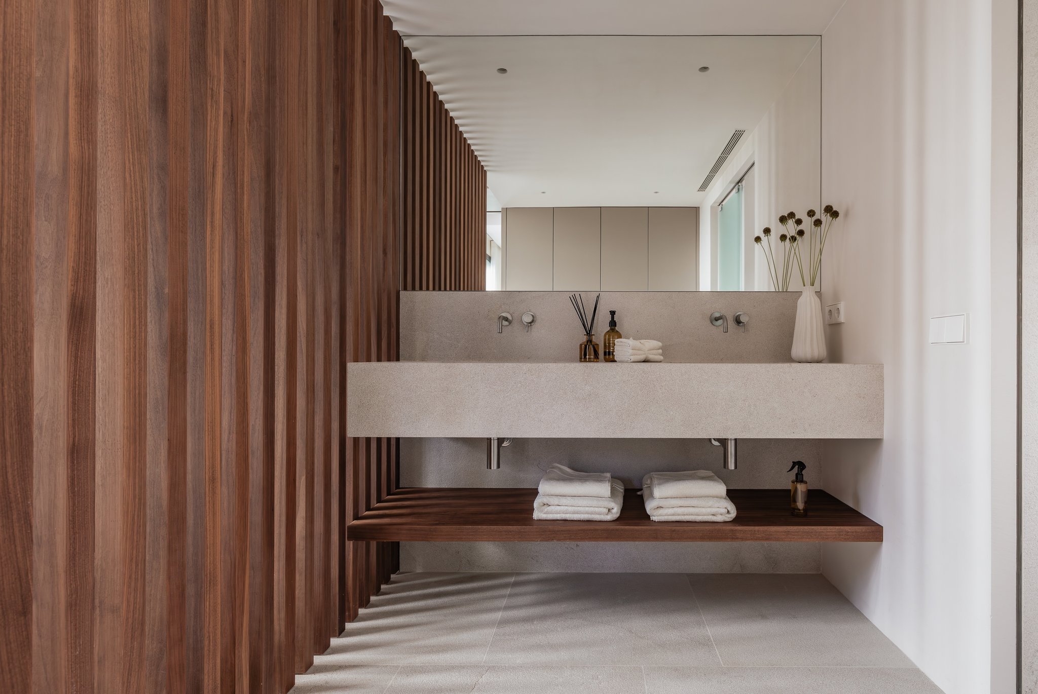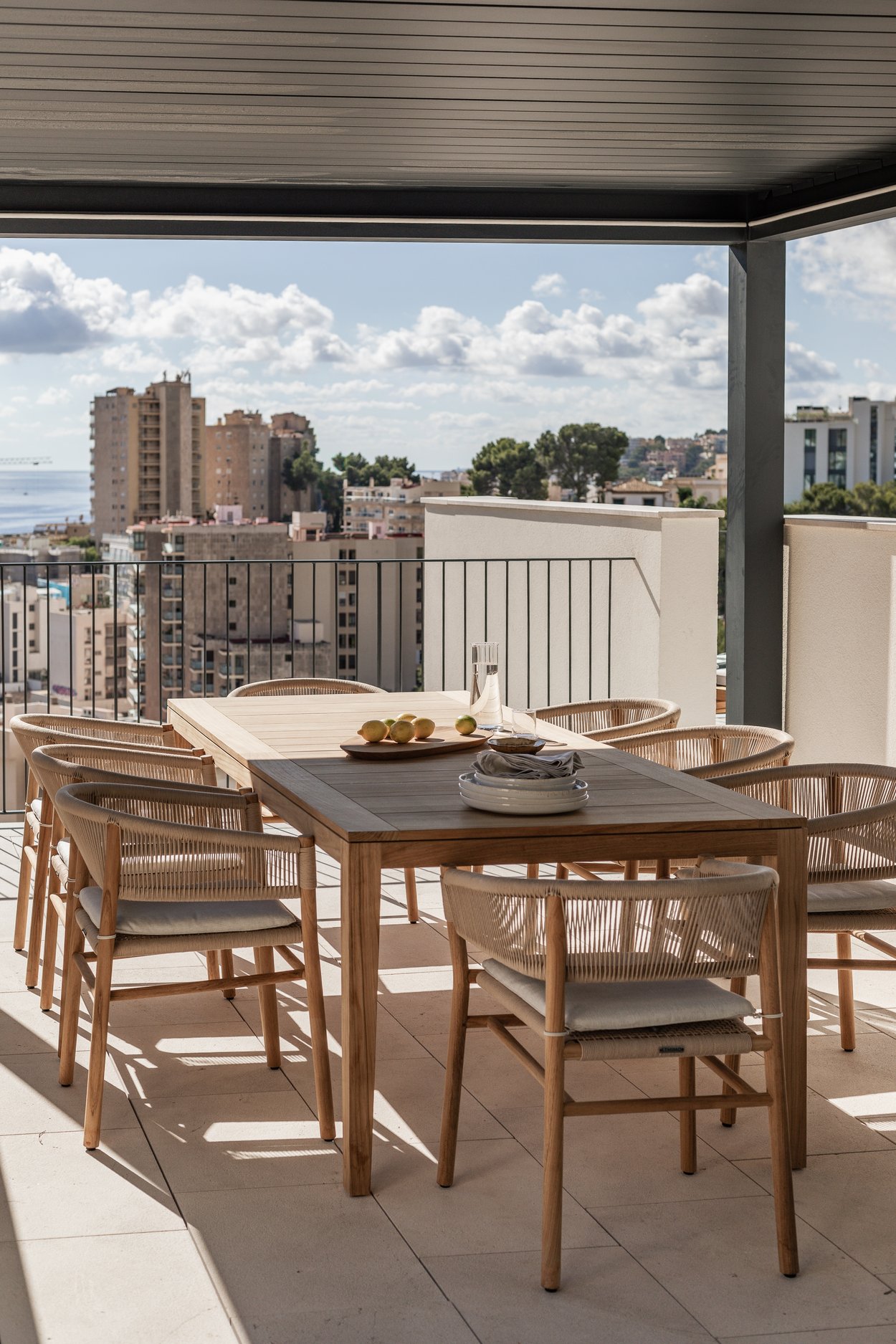 Denna exklusiva nybyggda takvåning förenar modern komfort med genuin medelhavskänsla och utmärker sig genom sina noggrant utvalda premiummaterial. Arkitekten Rafael Vidal och inredningsdesignern María Vidal har skapat en rofylld oas där naturliga material, mjuka färgskalor och omsorgsfullt planerade detaljer ger en harmonisk och välkomnande atmosfär. Varje element från texturer till belysning är genomtänkt för att framhäva rymd, ljus och den naturliga kopplingen till omgivningen.