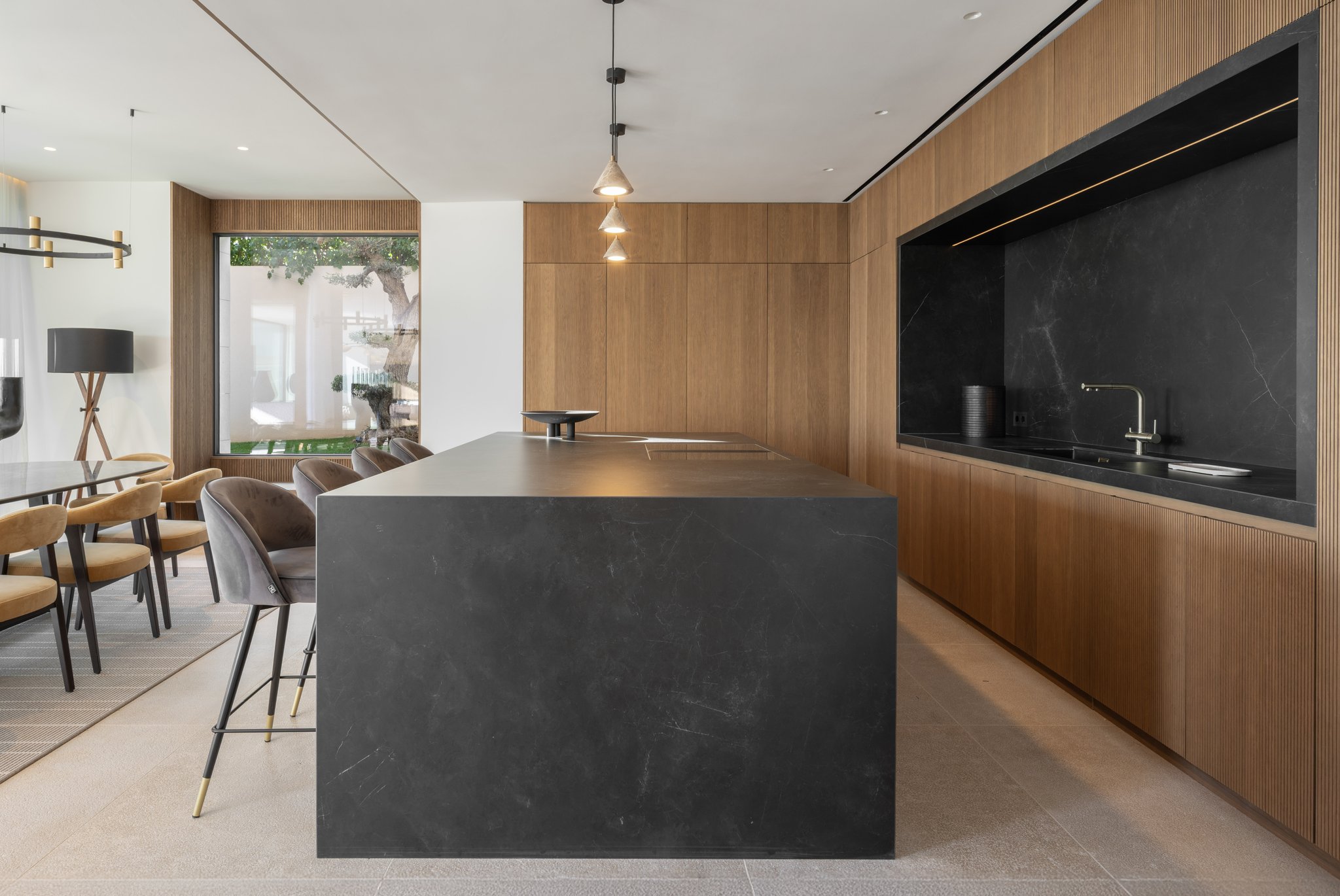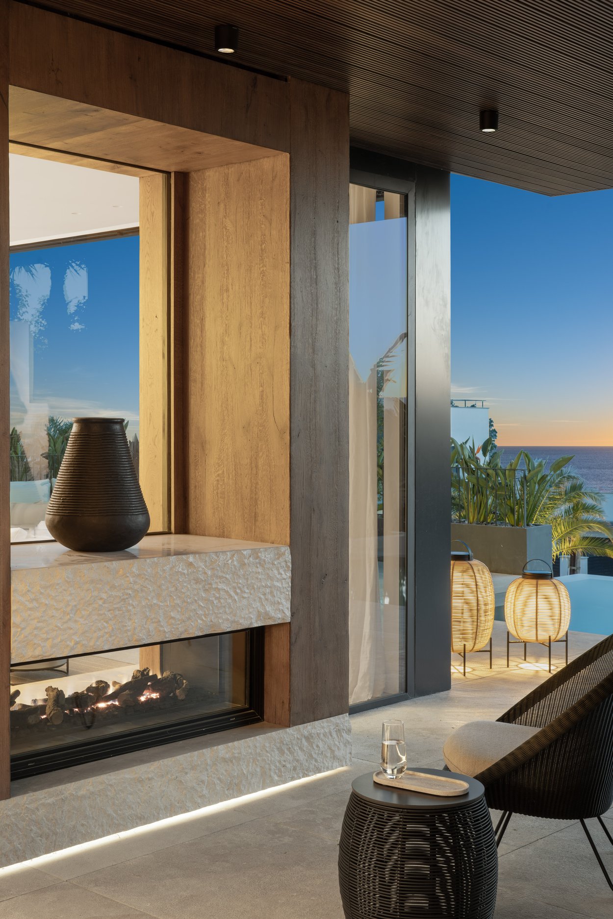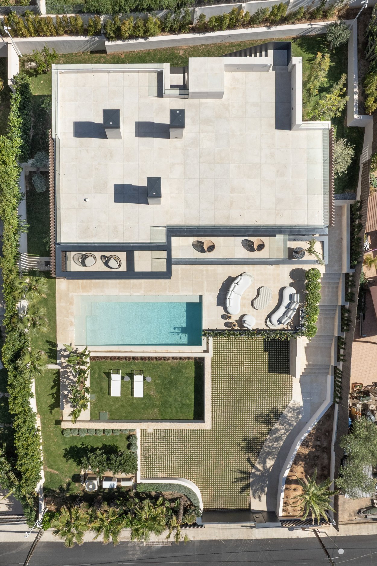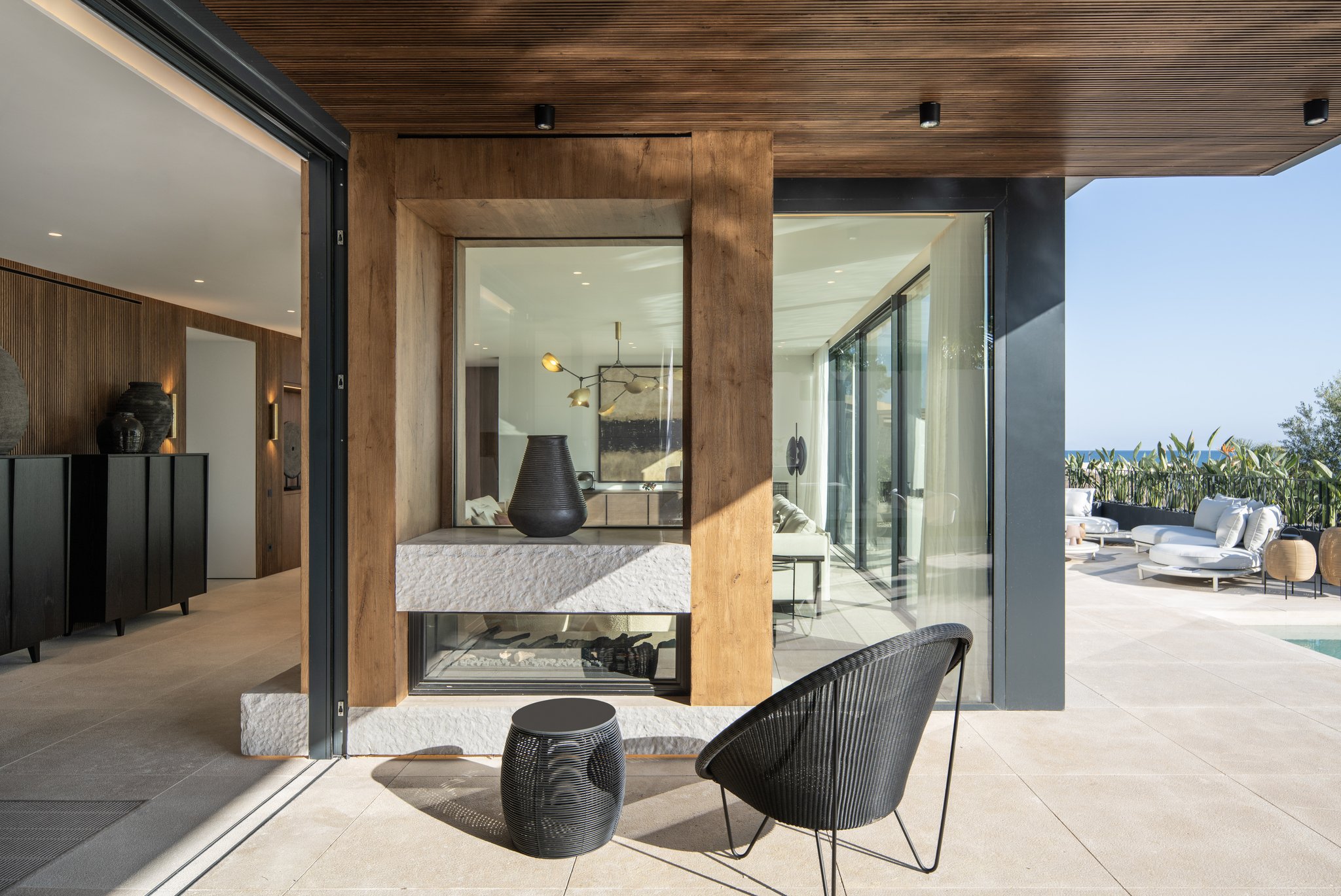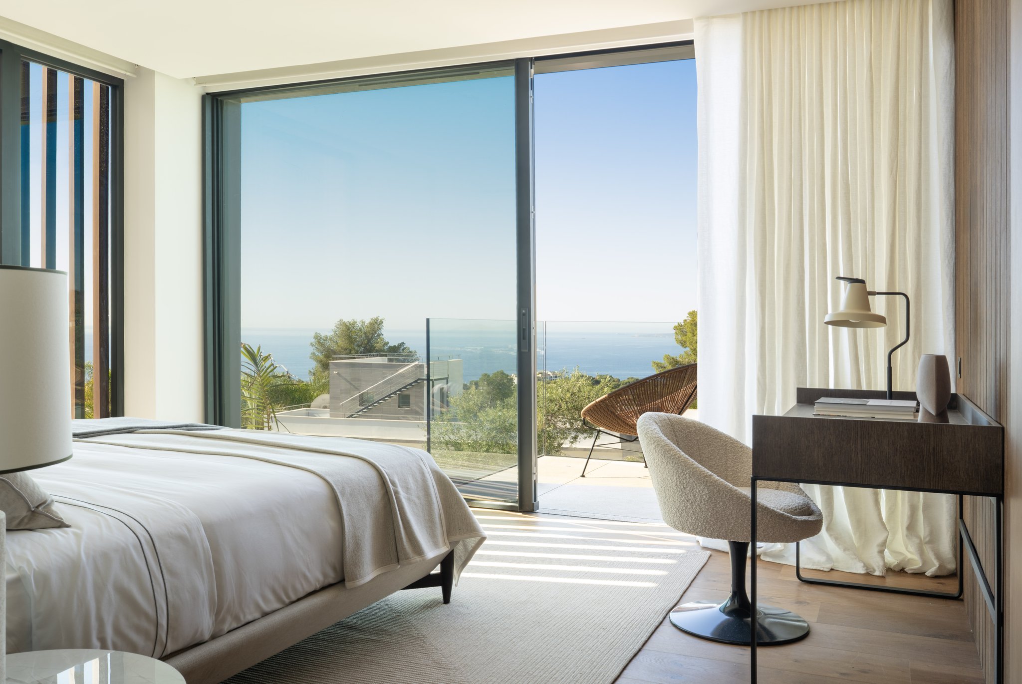 Villan ligger på en upphöjd tomt, vilket tillsammans med den smarta arkitekturen ger utsikt över havet från flera rum. När du kliver in möts du av en rymlig, öppen planlösning med stora glaspartier som suddar ut gränsen mellan ute och inne. Boytan är på 532 m² och rymmer fyra sovrum – alla med egna badrum. Master-sovrummet har dessutom en privat terrass och en walk-in-closet. Köket är fullt utrustat med en stilren köksö och ansluter till ett ljust och luftigt vardagsrum. Utomhus finns flera generösa terrasser, en infinitypool med saltvatten och en vackert anlagd trädgård.