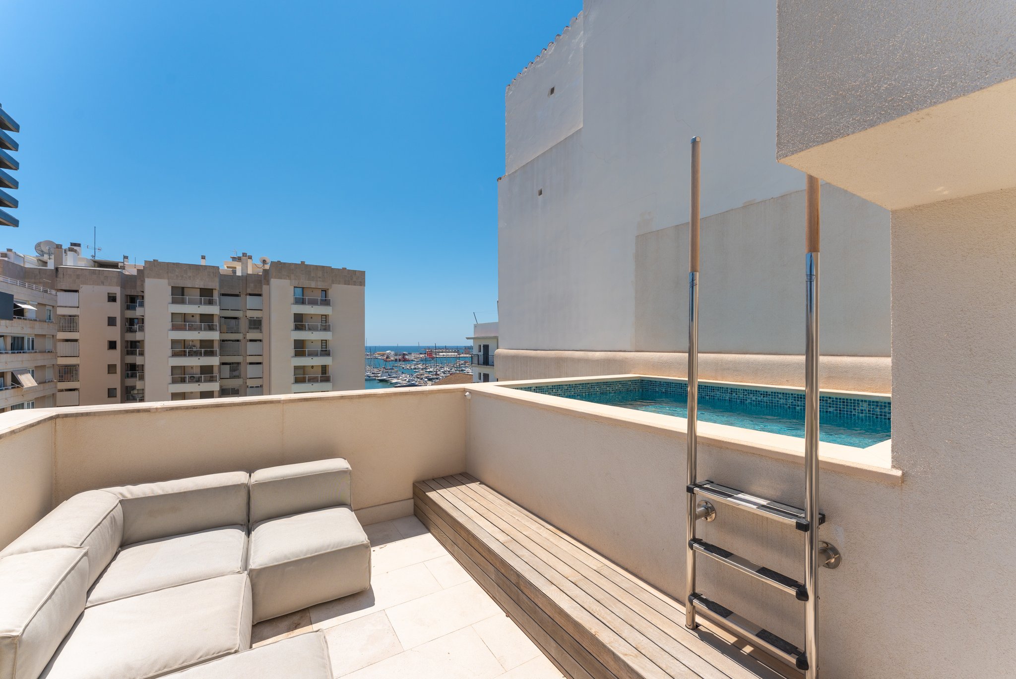 Ytterligare information: Luftkonditionering, hiss, golvvärme, terrass, bastu, träningsavdelning, öppen spis, takterrass, pool, bubbelpool, utomhusdusch, platsbyggda garderober, havsutsikt. Det går även att köpa till en parkeringsplats för 90 000 euro.