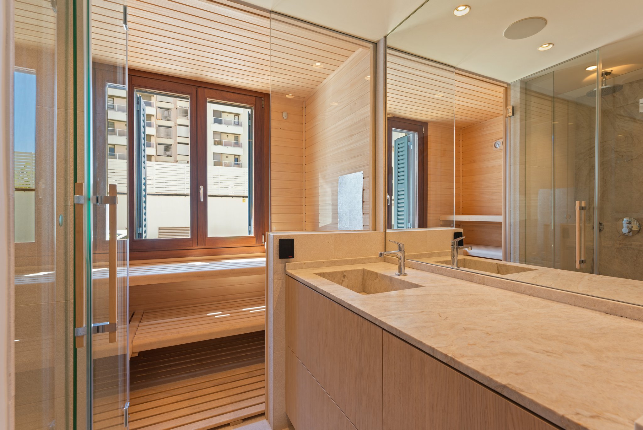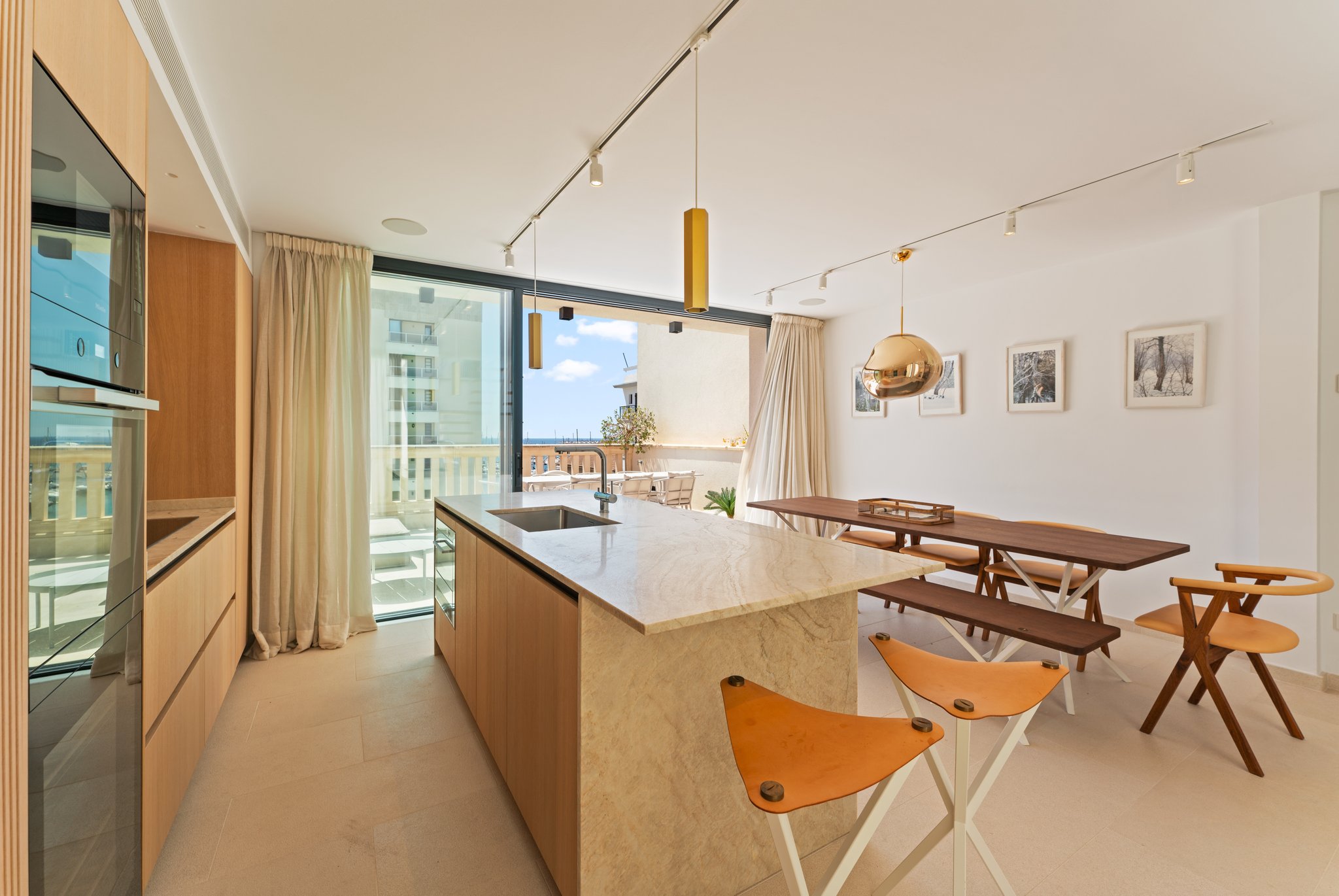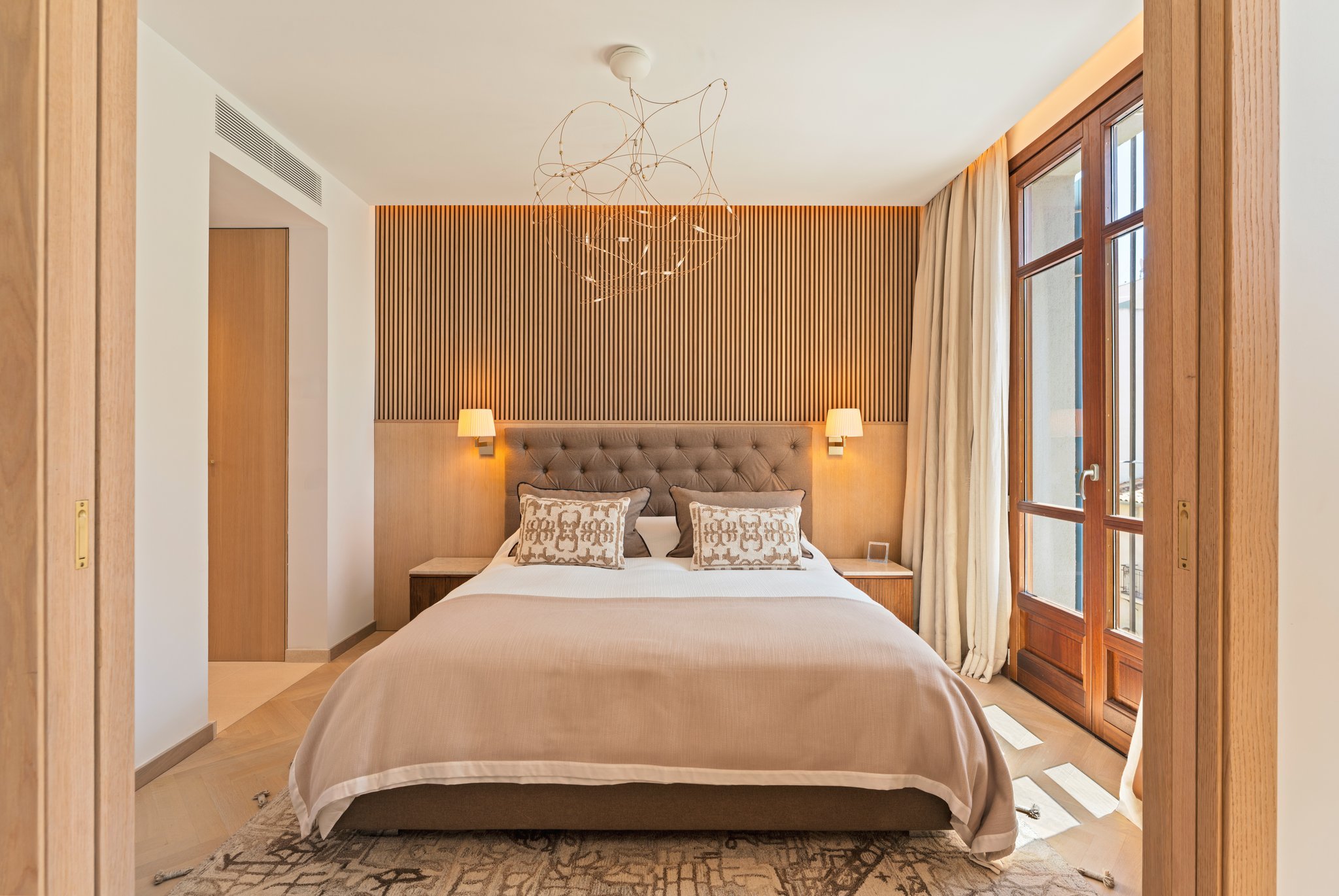 På entréplan möts du av en vacker entré, en modern vinkällare, bastu och träningsavdelning samt en bubbelpool. En våning upp finns två rymliga sovrum med tillhörande badrum samt tillgång till en härlig balkong. Fortsätter du upp en våning hittar du huvudsovrummet med eget badrum, en klädkammare, ett stort, ljust vardagsrum med öppen spis samt utgång till balkongen. På översta våningen har du en central sällskapsdel med matplats, ett fullt utrustat öppet kök, en gästtoalett och en härlig terrass. Du erbjuds även en takterrass med fantastisk utsikt över kusten och bergen, en loungedel samt en pool med utomhusdusch.