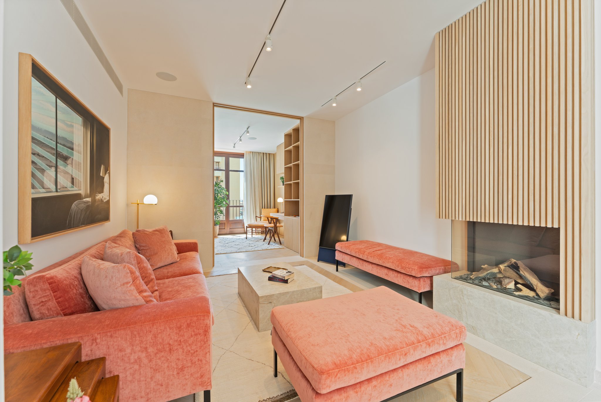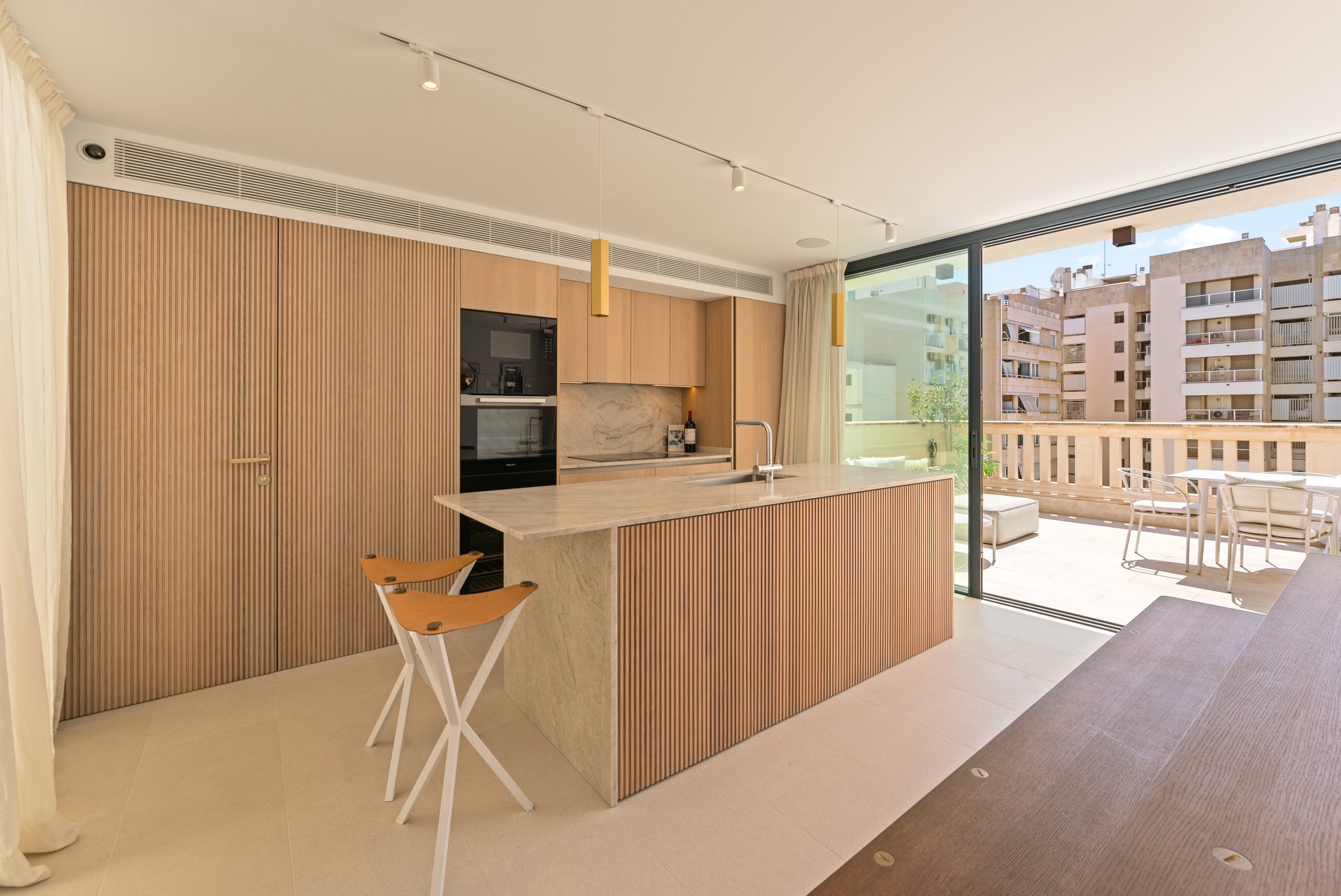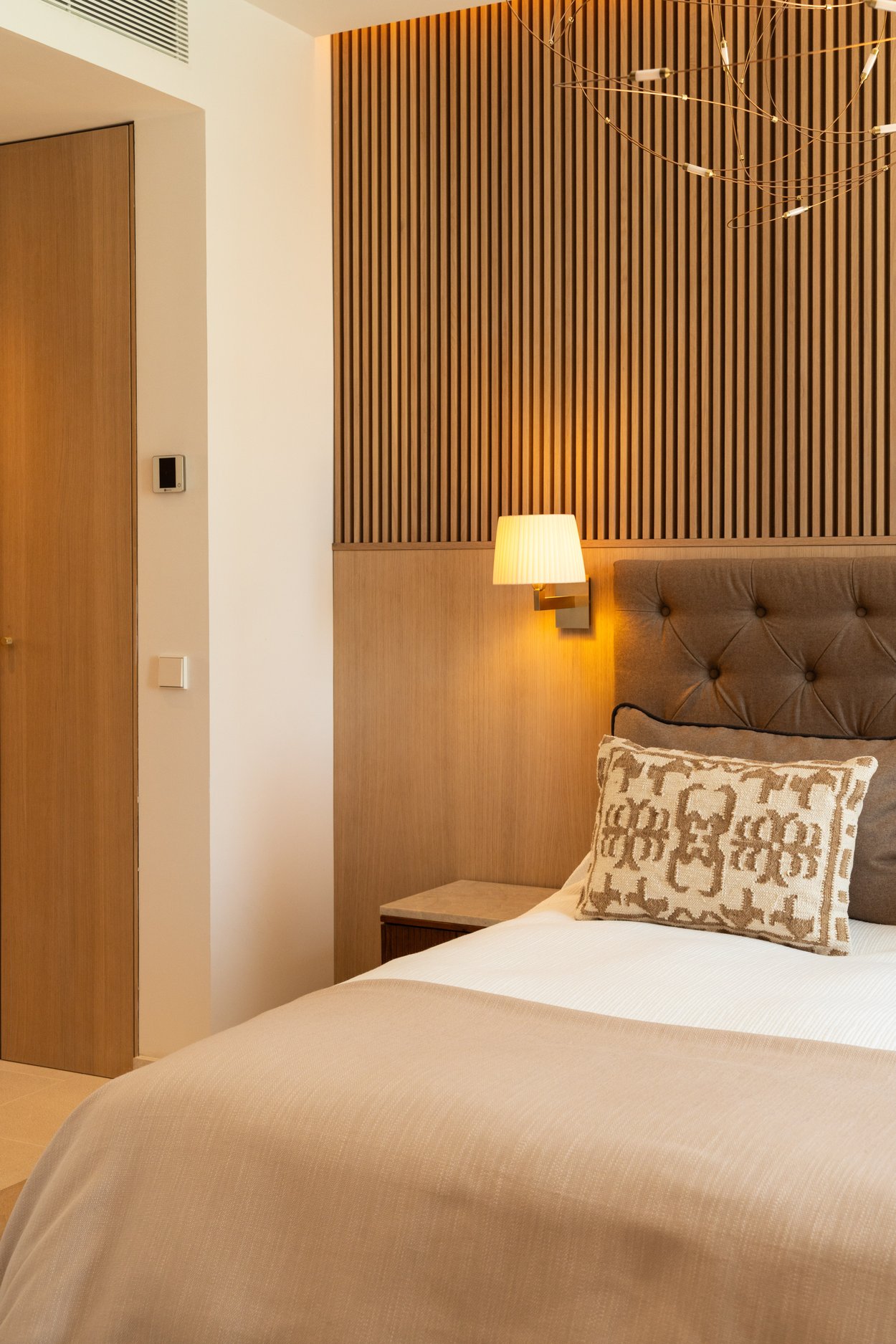 På entréplan möts du av en vacker entré, en modern vinkällare, bastu och träningsavdelning samt en bubbelpool. En våning upp finns två rymliga sovrum med tillhörande badrum samt tillgång till en härlig balkong. Fortsätter du upp en våning hittar du huvudsovrummet med eget badrum, en klädkammare, ett stort, ljust vardagsrum med öppen spis samt utgång till balkongen. På översta våningen har du en central sällskapsdel med matplats, ett fullt utrustat öppet kök, en gästtoalett och en härlig terrass. Du erbjuds även en takterrass med fantastisk utsikt över kusten och bergen, en loungedel samt en pool med utomhusdusch.
