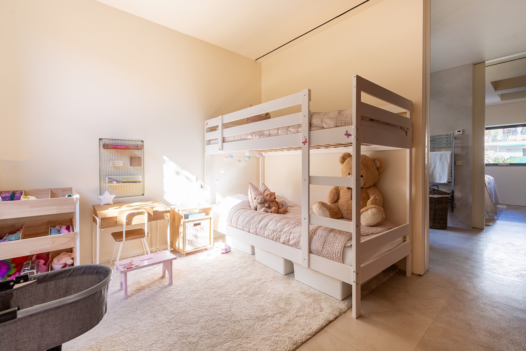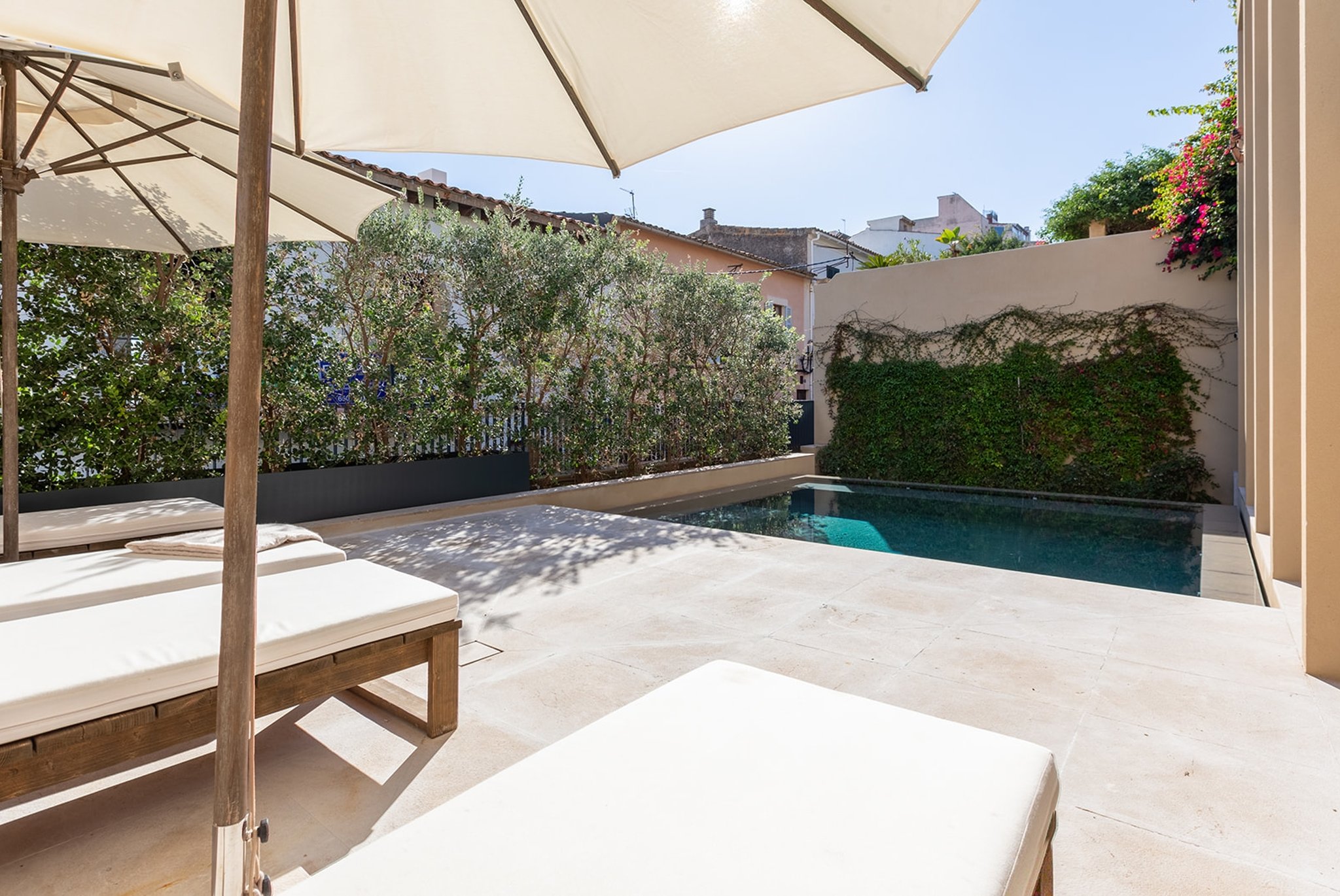 Bostadens höjdpunkt är den generösa takterrassen. Här erbjuds en fantastisk panoramautsikt över Palma, katedralen, havet, bergen och Bellverparken. Med plats för matgrupp, ett fullt utrustat utekök, loungemöbler, extra förvaring, samt så finns här en andra pool!
