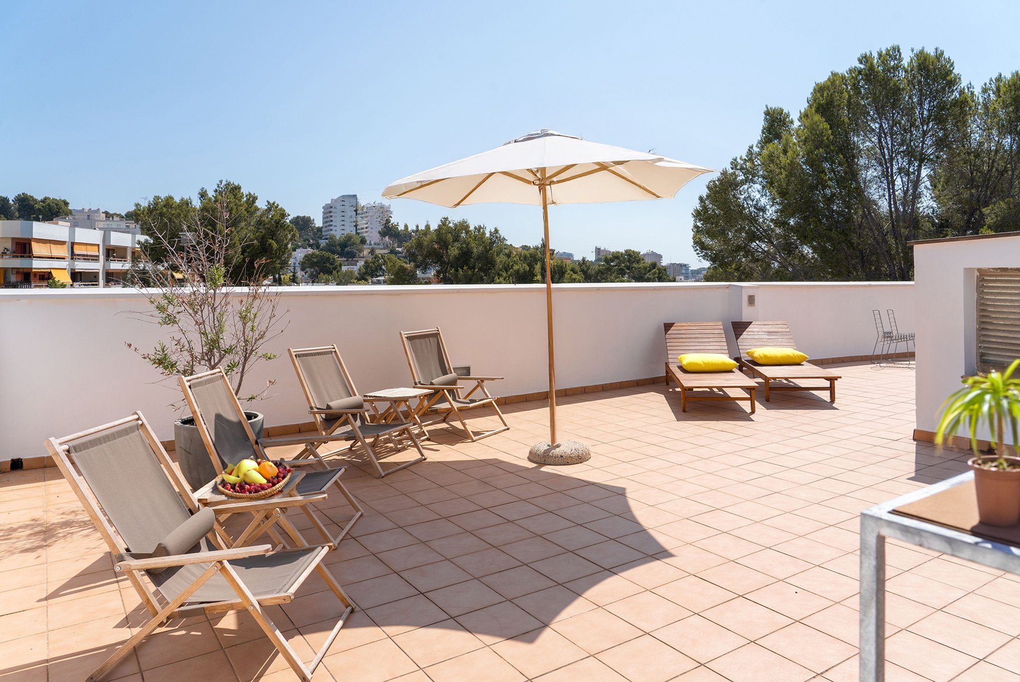 I San Agustin, i ett lugnt kvarter, hittar du denna nyrenoverade takvåning. Bostaden ligger högst upp i en mindre fastighet med endast tre våningar, och härifrån är det bara 10 minuters promenad ner till stranden.