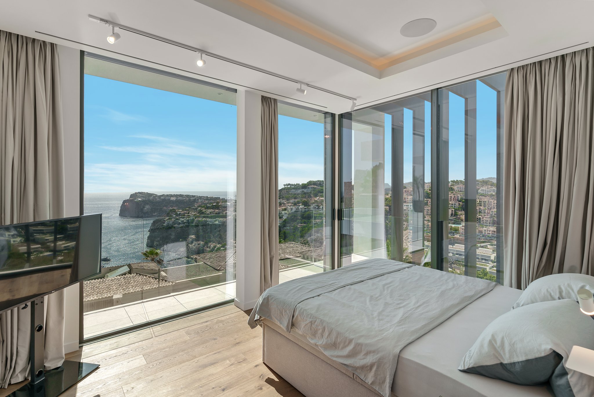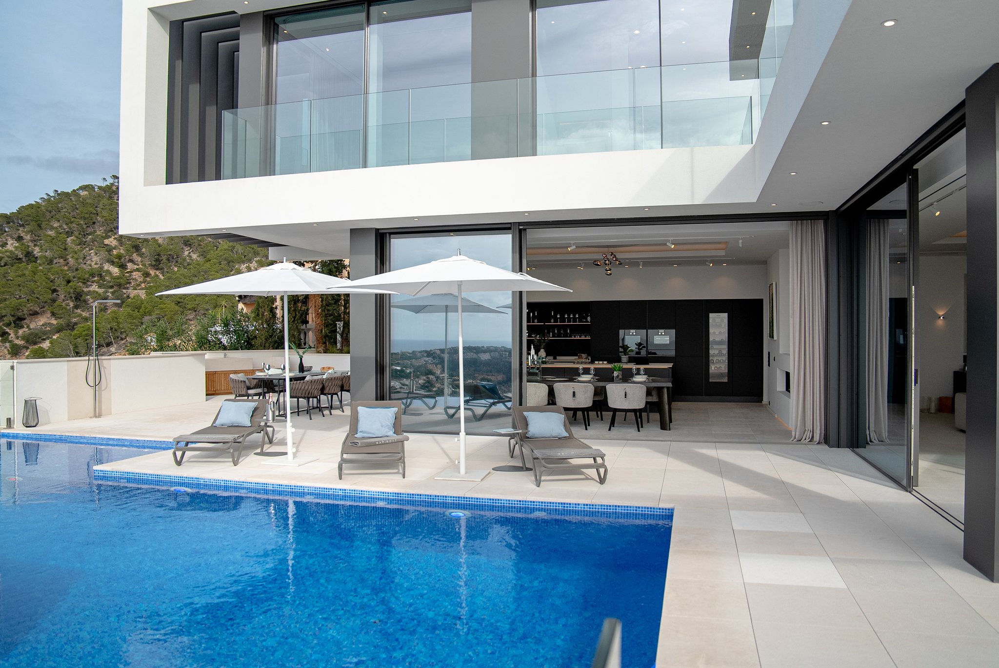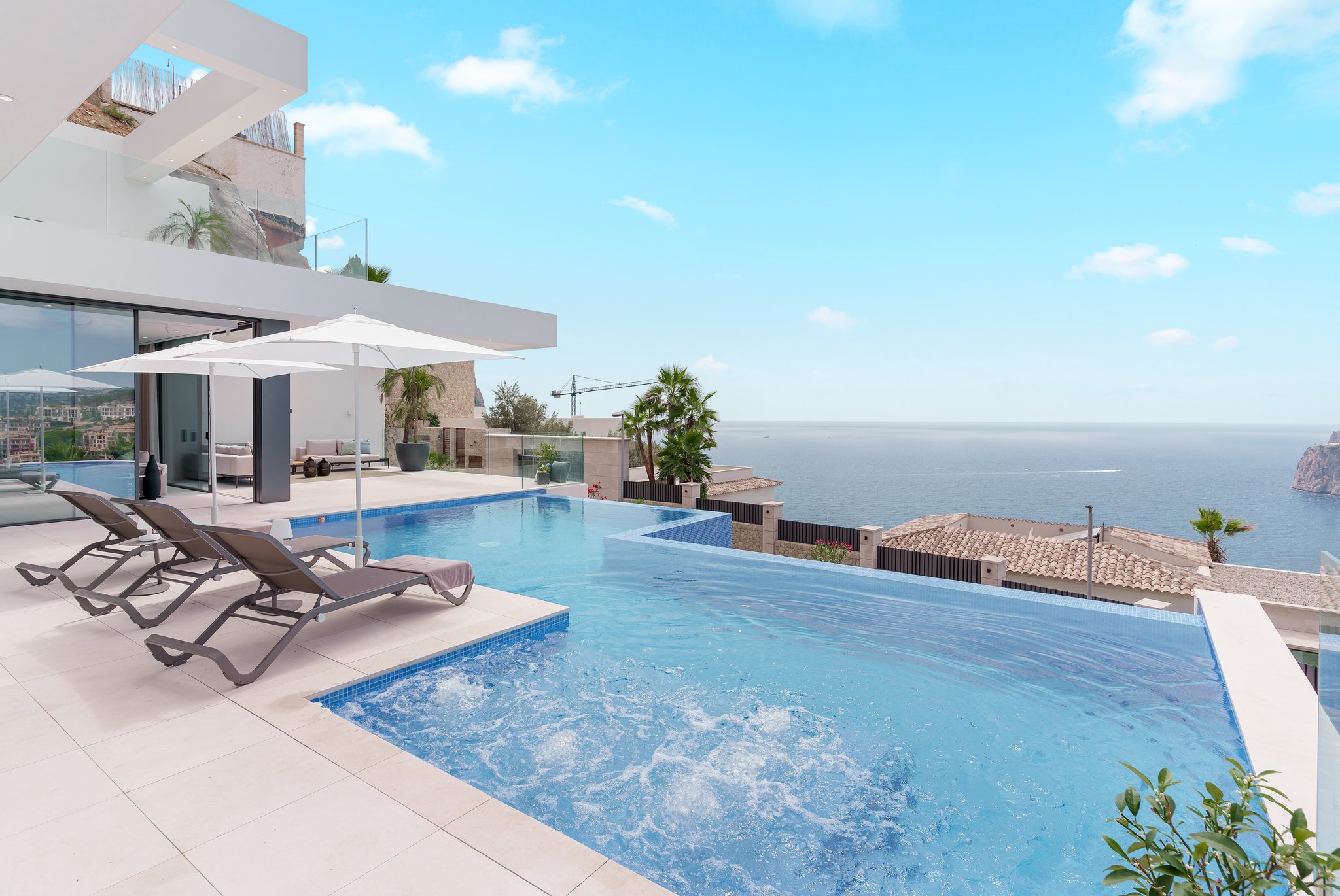 Den här imponerande, moderna villan ligger i Puerto de Andratx, en lyxig pittoresk hamn på sydvästra Mallorca. Villan ska vara färdigställd 2023. Bostaden kommer att ha en boyta på cirka 600 m2 plus terrasser och ligger på en tomt på 1000 m2. Boytan består av ett stort vardagsrum med öppen spis, ett Noltekök med matplats, 6 sovrum och 6 badrum. Huvudvåningen har olika terrasser och en vacker pool. Master bedroom öppnar upp mot en stor terrass med en fantastisk havsutsikt. Ytterligare funktioner inkluderar en mångsidig källare, luftkonditionering, öppen spis, larmsystem, Nolte kök, garage för upp till 7 fordon. Inredning av Minotti, Eichholtz, Gaggenau och andra liknande märken i samma linje.
