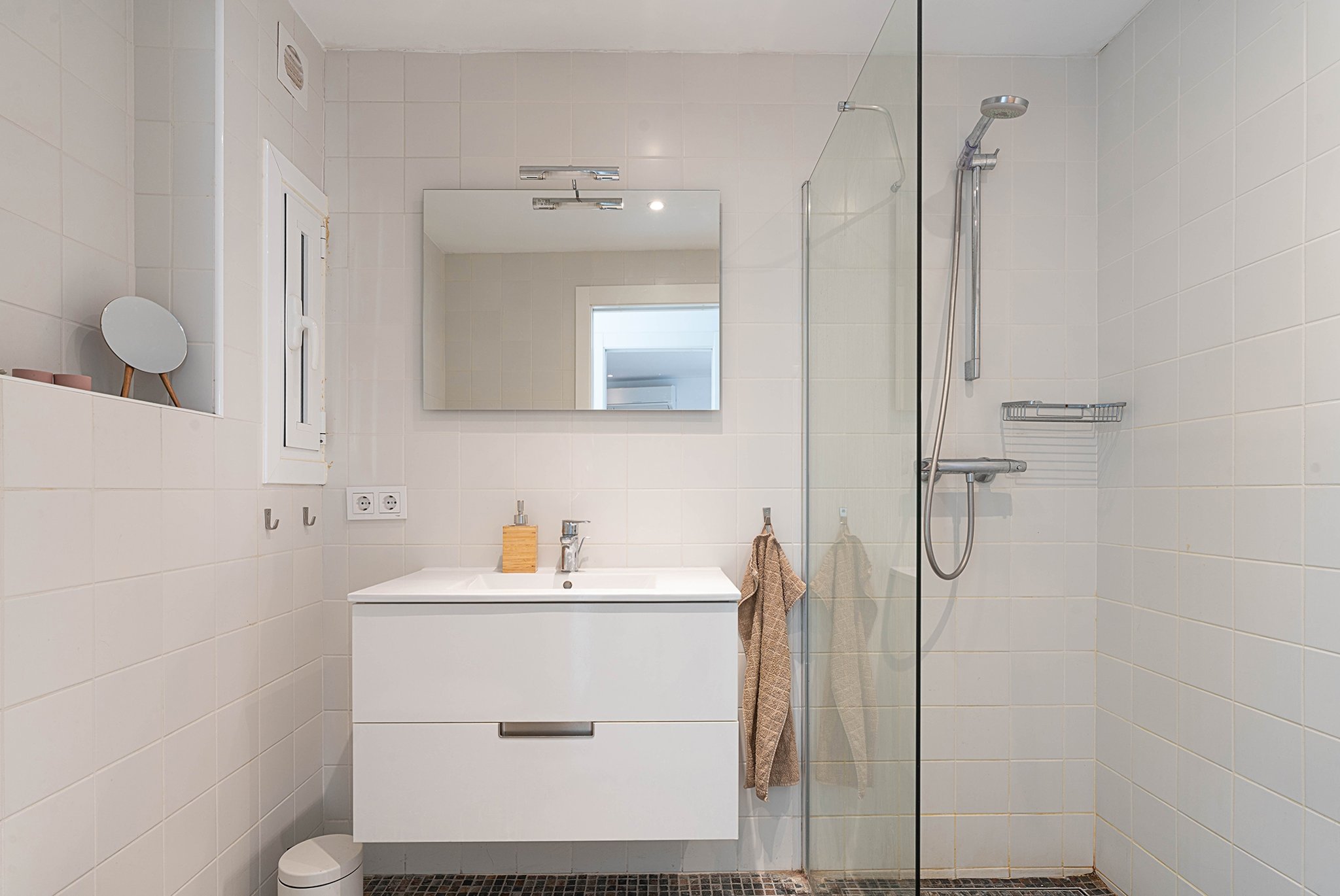 Palma centrum nås på bara några minuter med bil och Cala Mayor-stranden ligger på kort promenadavstånd. Lägenheten säljs möblerad, vilket innebär att du kan flytta in och börja trivas direkt.