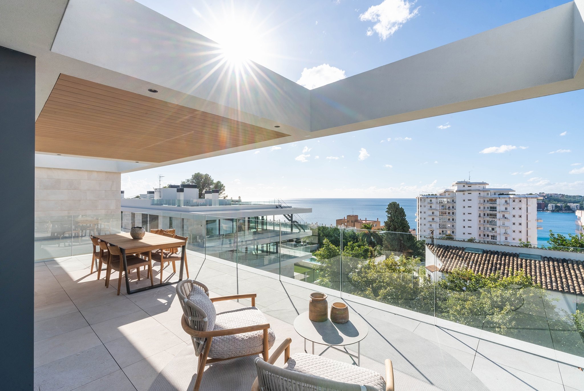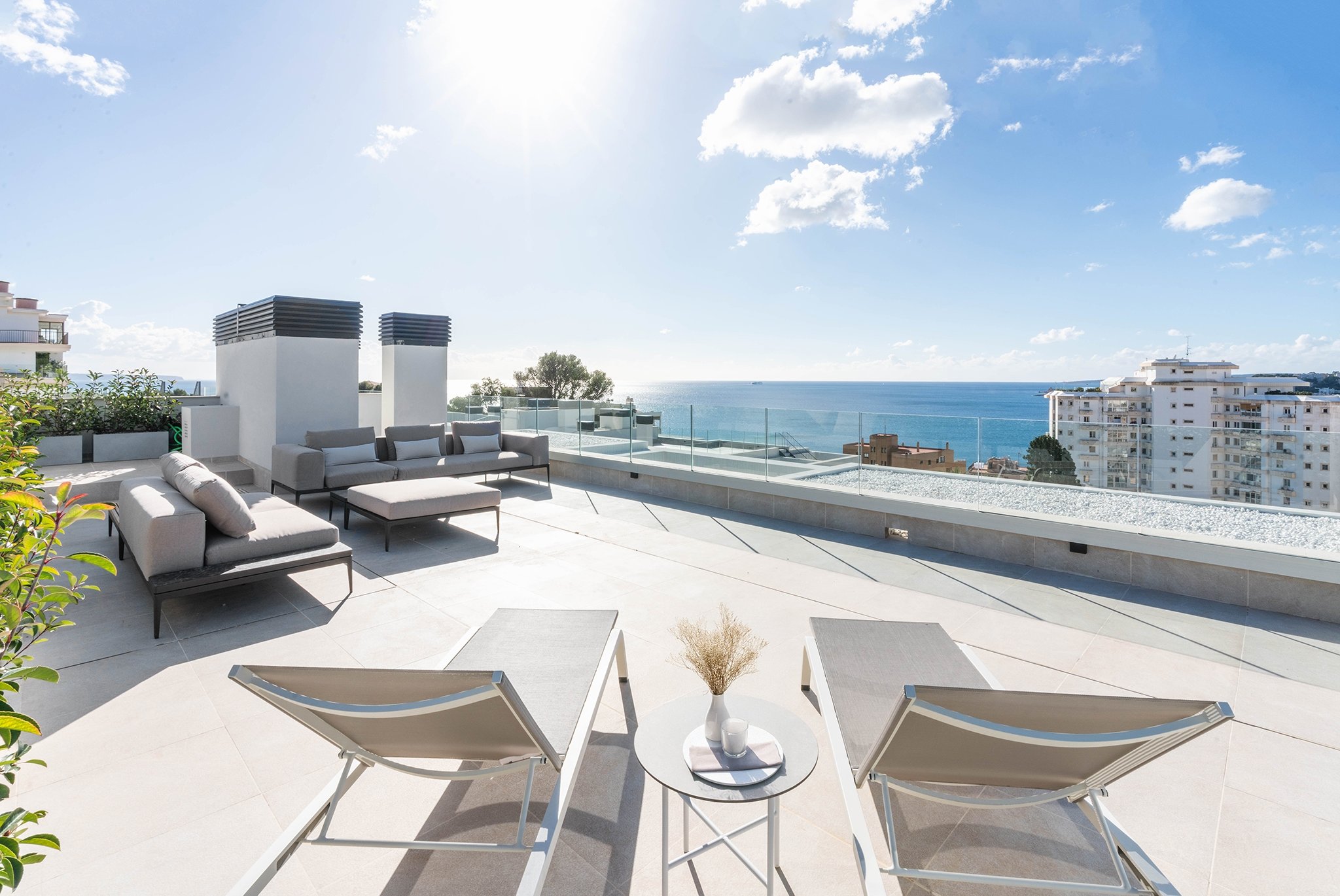 Detta Penthouse är beläget i Ever Marivent, som erbjuds exklusivt av oss. Komplexet ligger i eftertraktade Cala Major, mycket nära havet och endast några få minuter från centrala Palma.