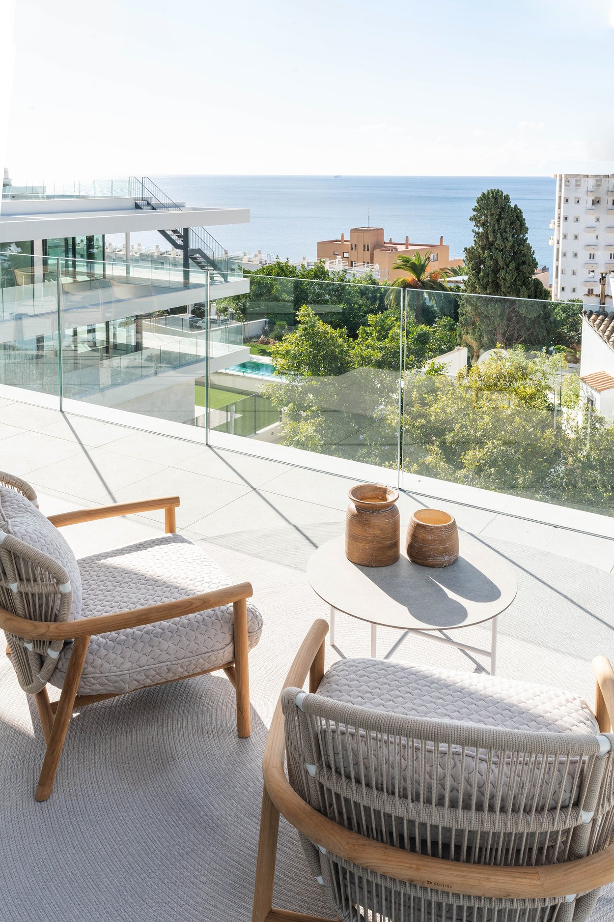 Detta Penthouse har en boyta på 163 m2 med en 65 m2 terrass på samma nivå som bostaden. Från den första terrassen leder en trappa up till din privata takterrass på 120 m2. Härifrån har du fantastisk panoramautsikt över havet mot sydväst. Bostaden erbjuder också 4 sovrum, 3 badrum och ett stort vardagsrum/kök med matdel.