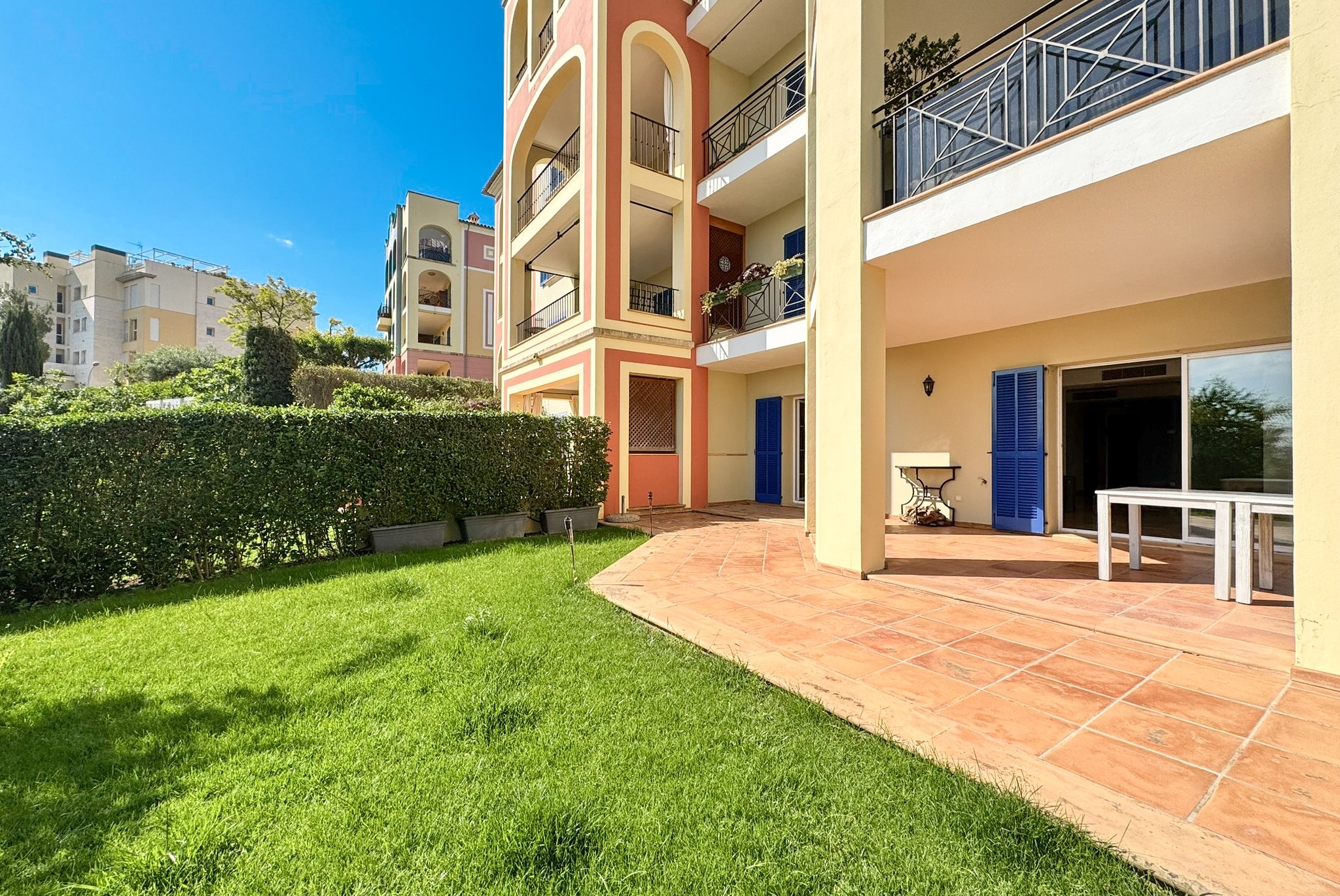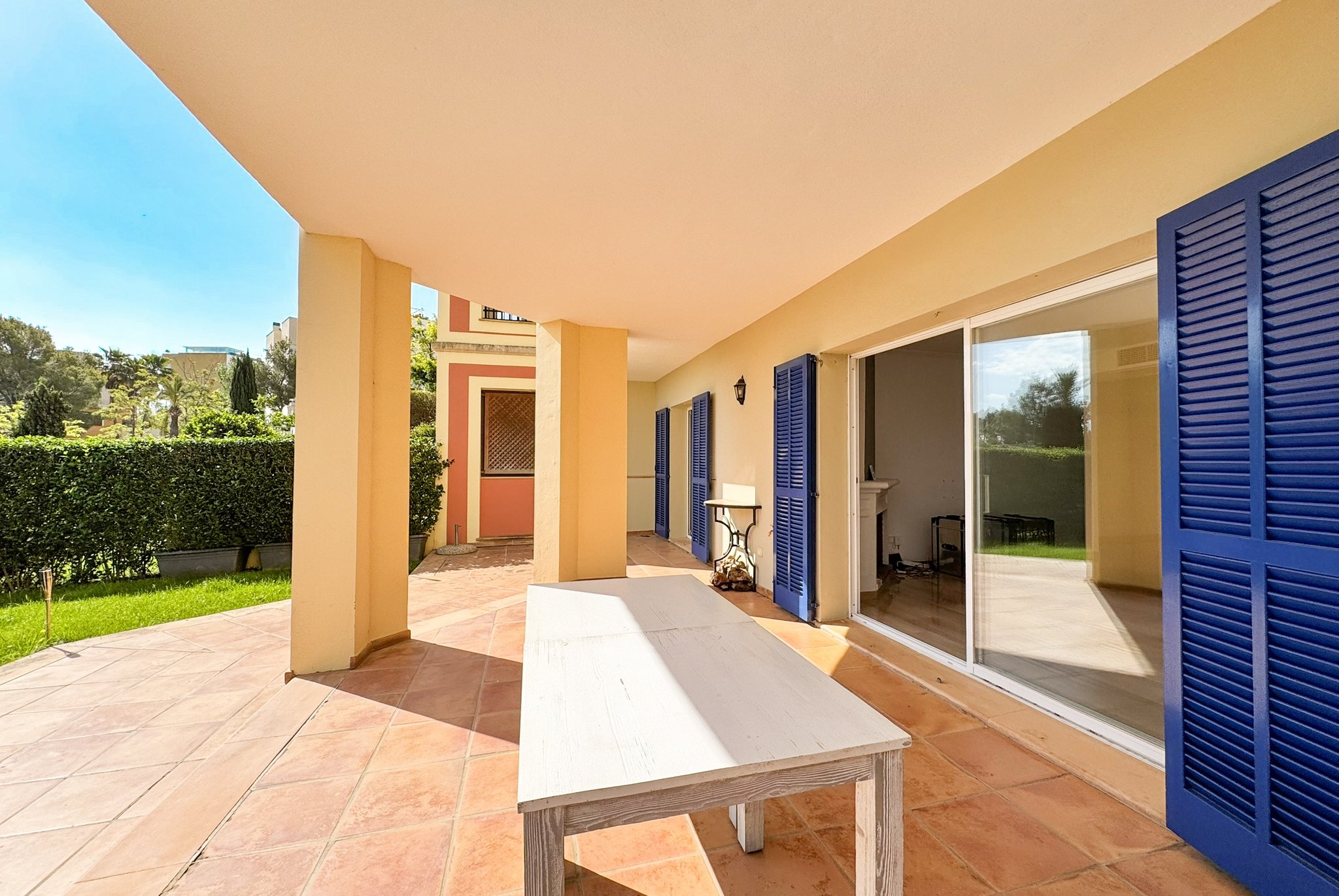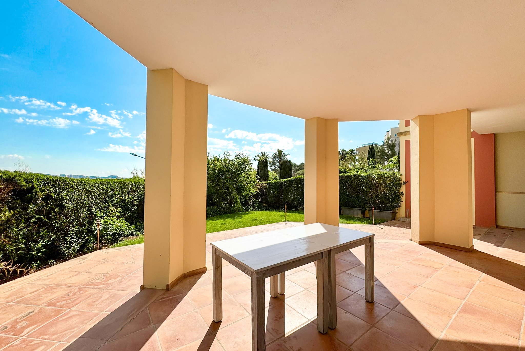I eftertraktade Bendinat, i ett av områdets mest exklusiva bostadskomplex, ligger denna trivsamma lägenhet på markplan. Här bor du med en privat trädgård och en stor solig terrass med havsutsikt. Komplexet erbjuder dessutom tillgång till en gemensam Medelhavsträdgård, flera pooler, säkerhetsgrind och privat parkering.