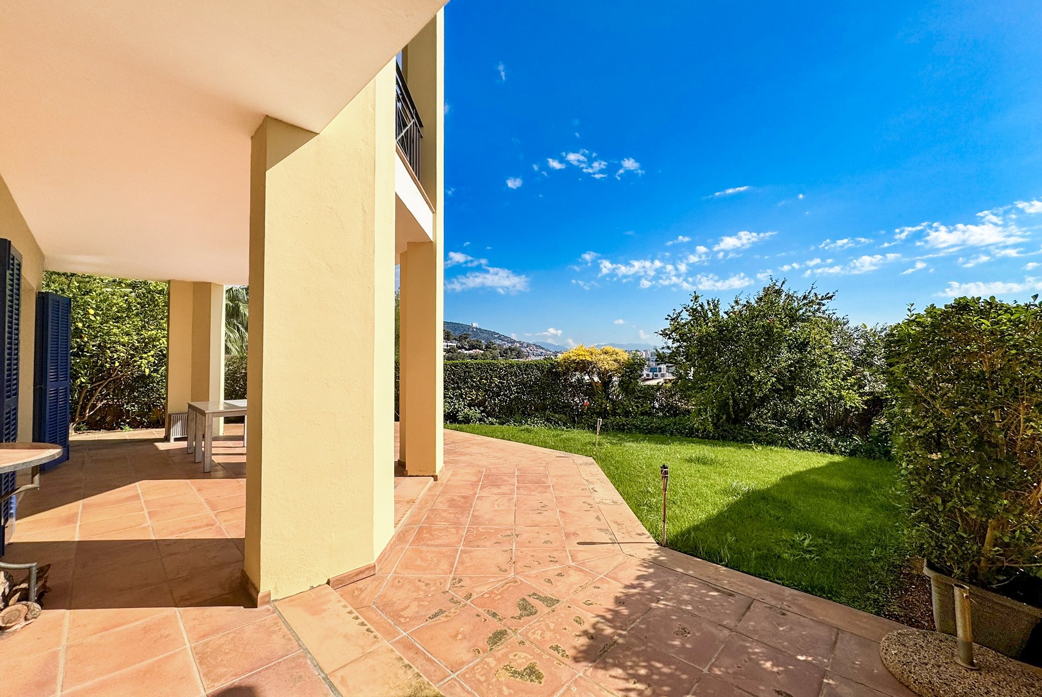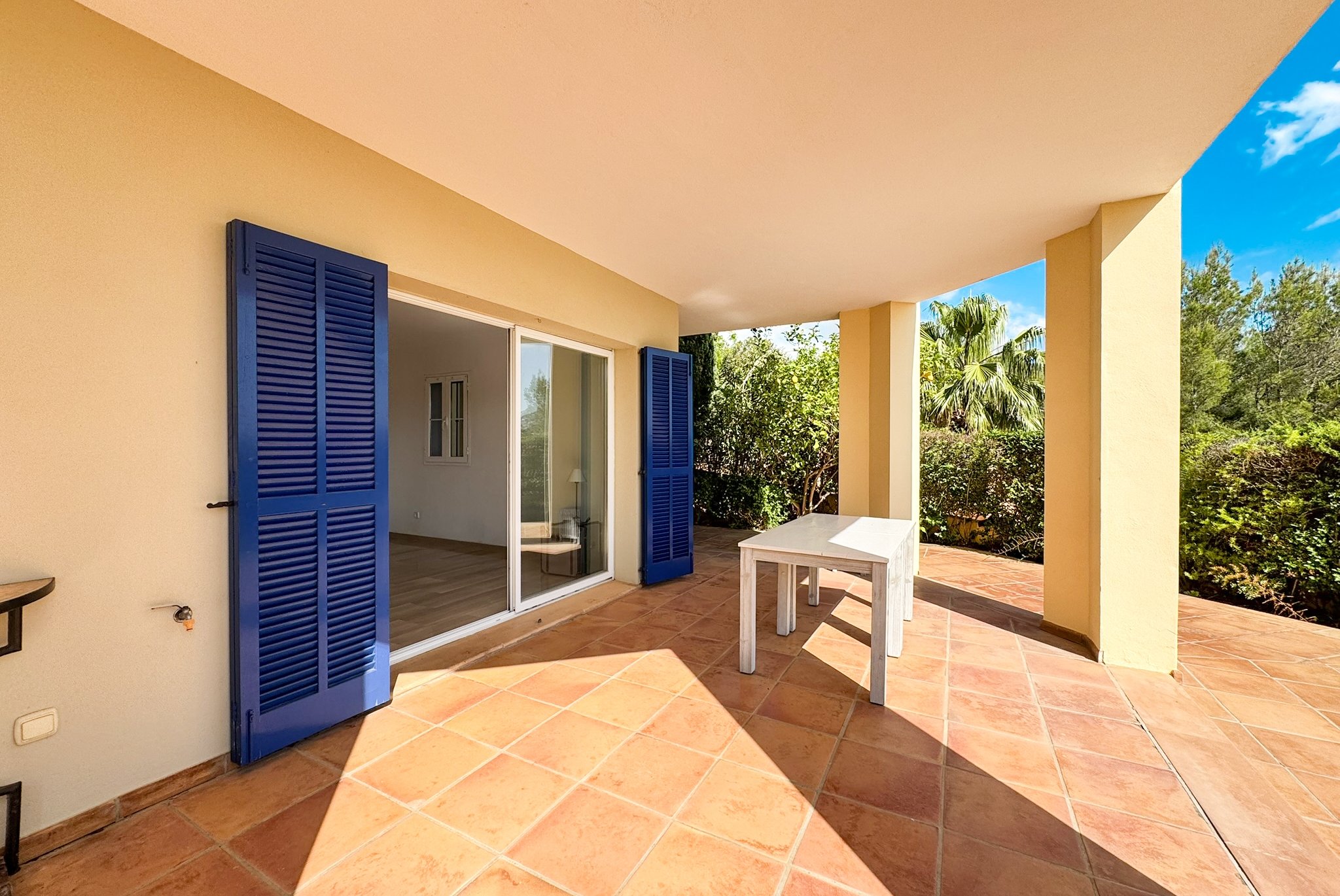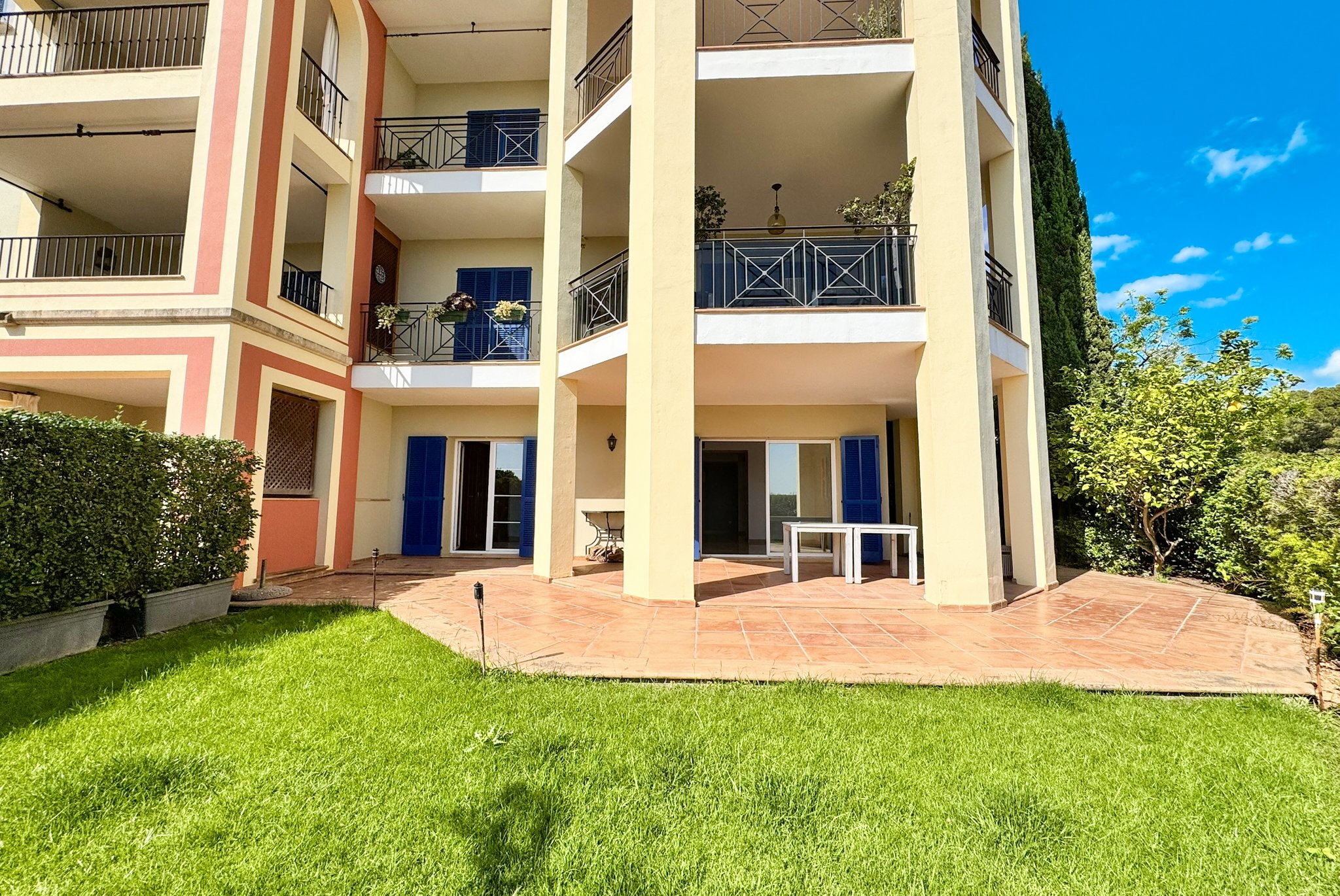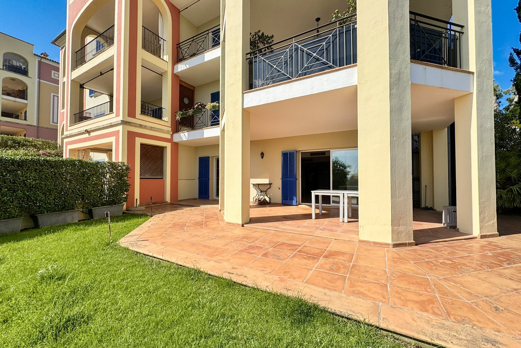 I eftertraktade Bendinat, i ett av områdets mest exklusiva bostadskomplex, ligger denna trivsamma lägenhet på markplan. Här bor du med en privat trädgård och en stor solig terrass med havsutsikt. Komplexet erbjuder dessutom tillgång till en gemensam Medelhavsträdgård, flera pooler, säkerhetsgrind och privat parkering.