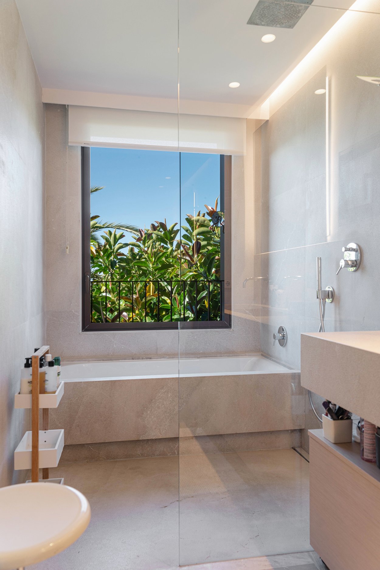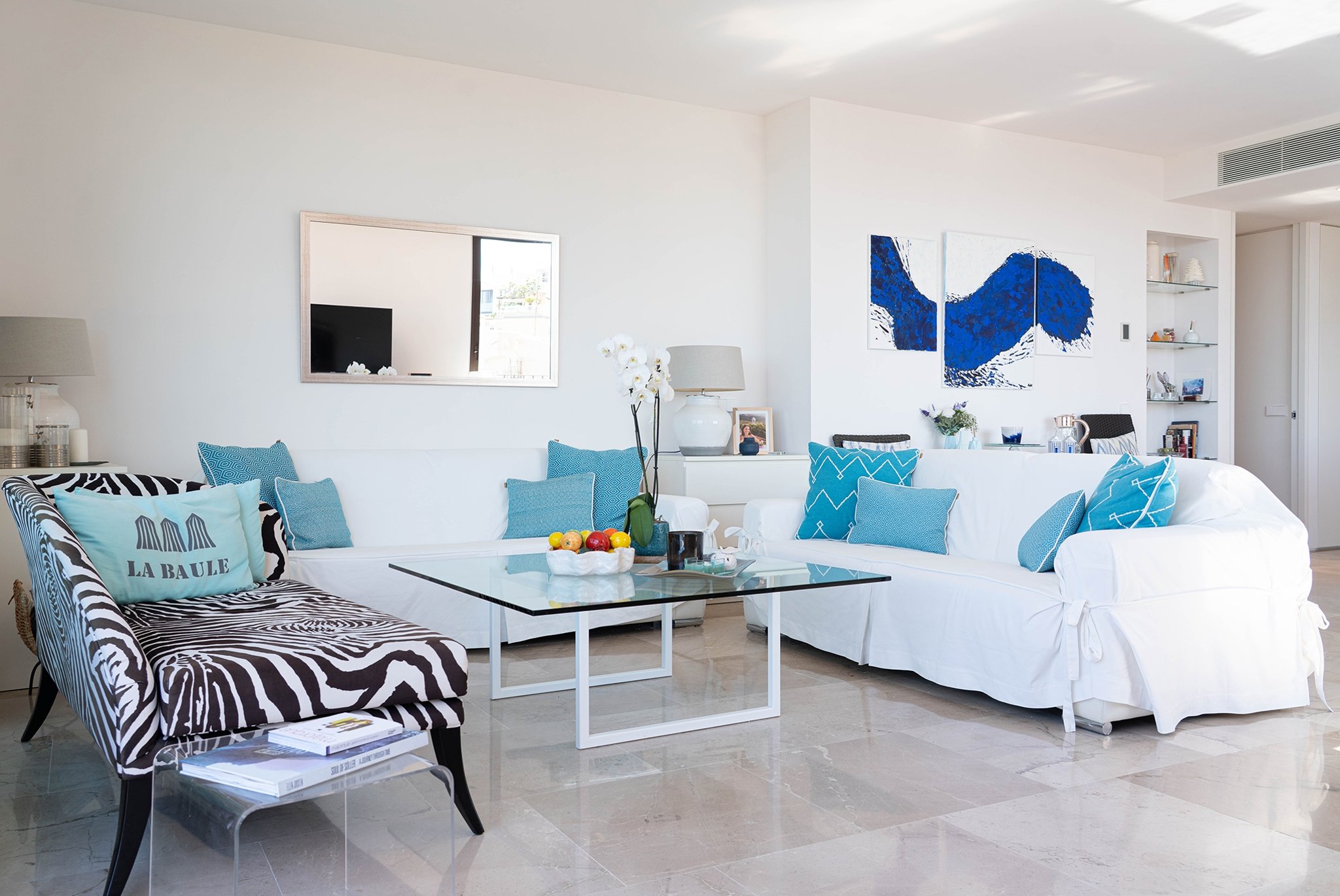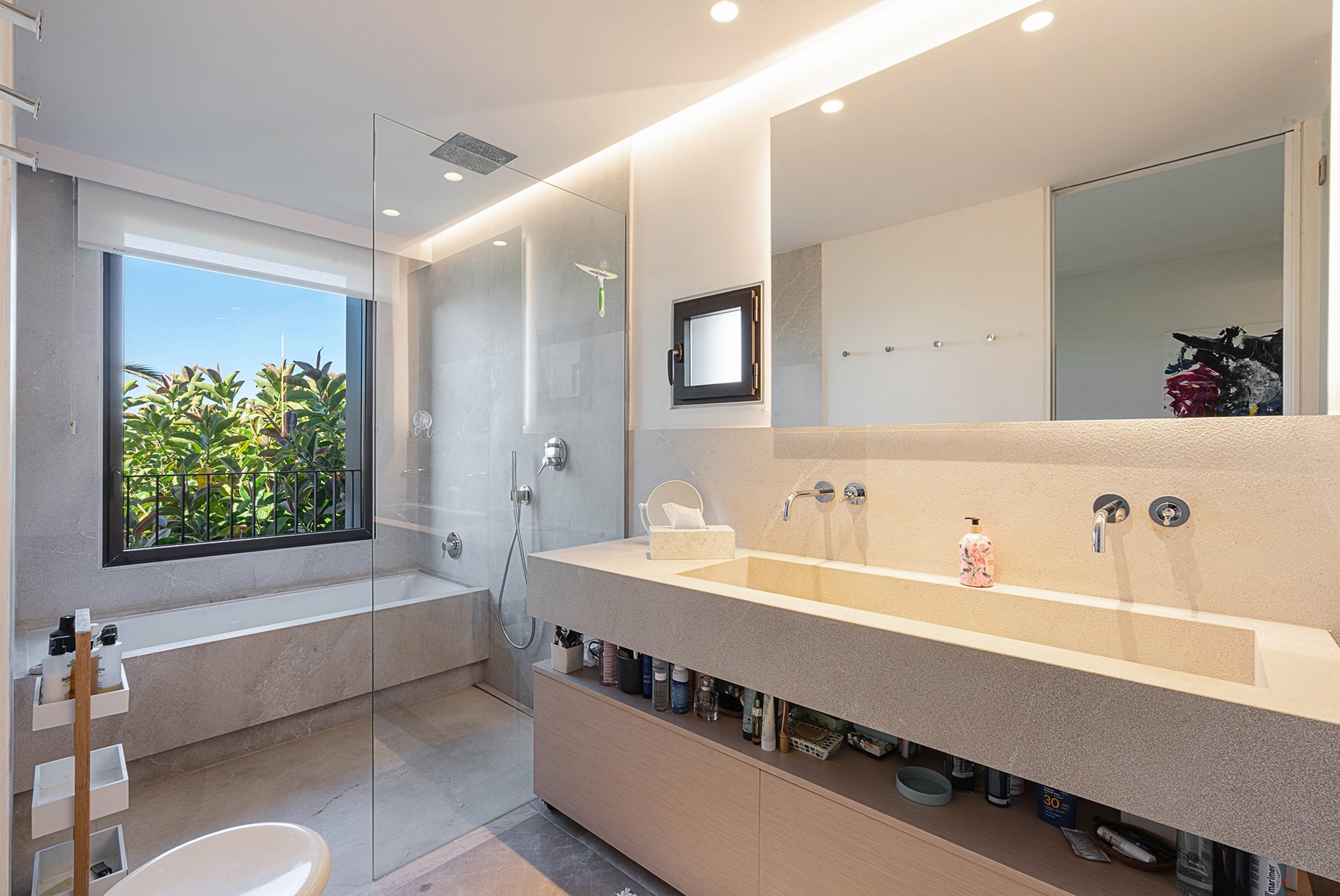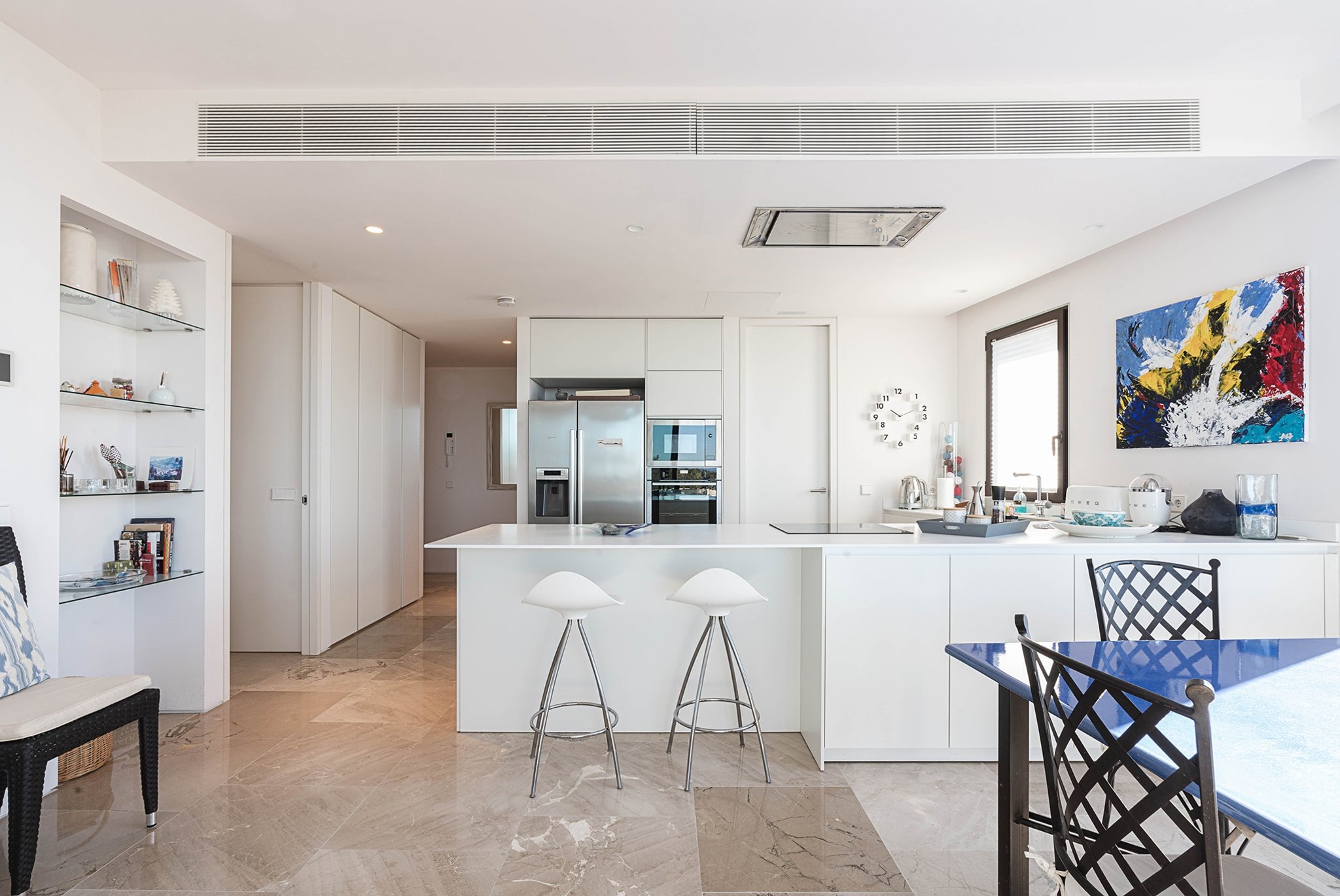 I lägenheten finner du bekvämligheter som AC, golvvärme, två parkeringsplatser i garage, förråd, samt en välskött community-area med saltvattenpool och vackra trädgårdar.
