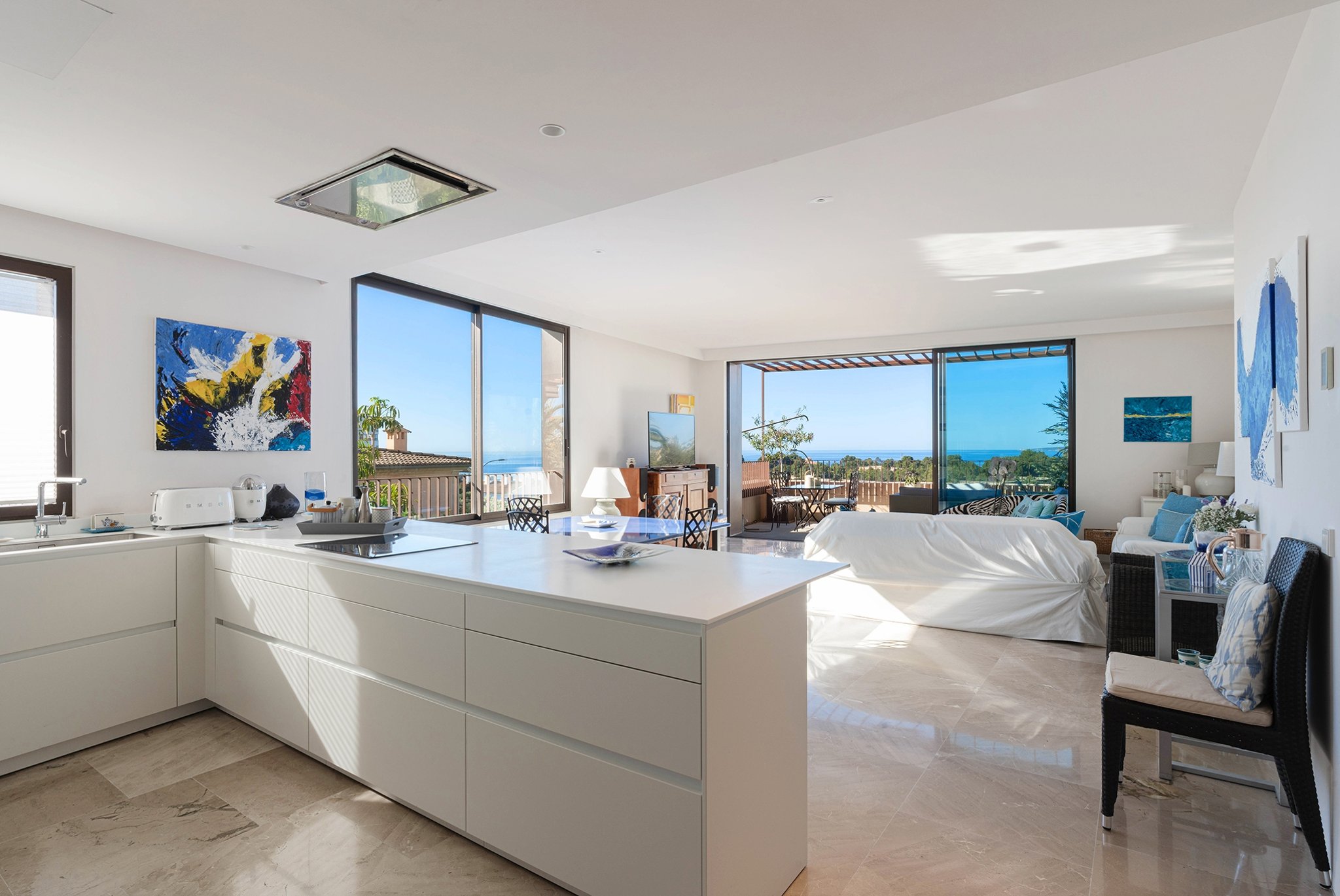 Modern lägenhet med havsutsikt och terrass i Bonanova