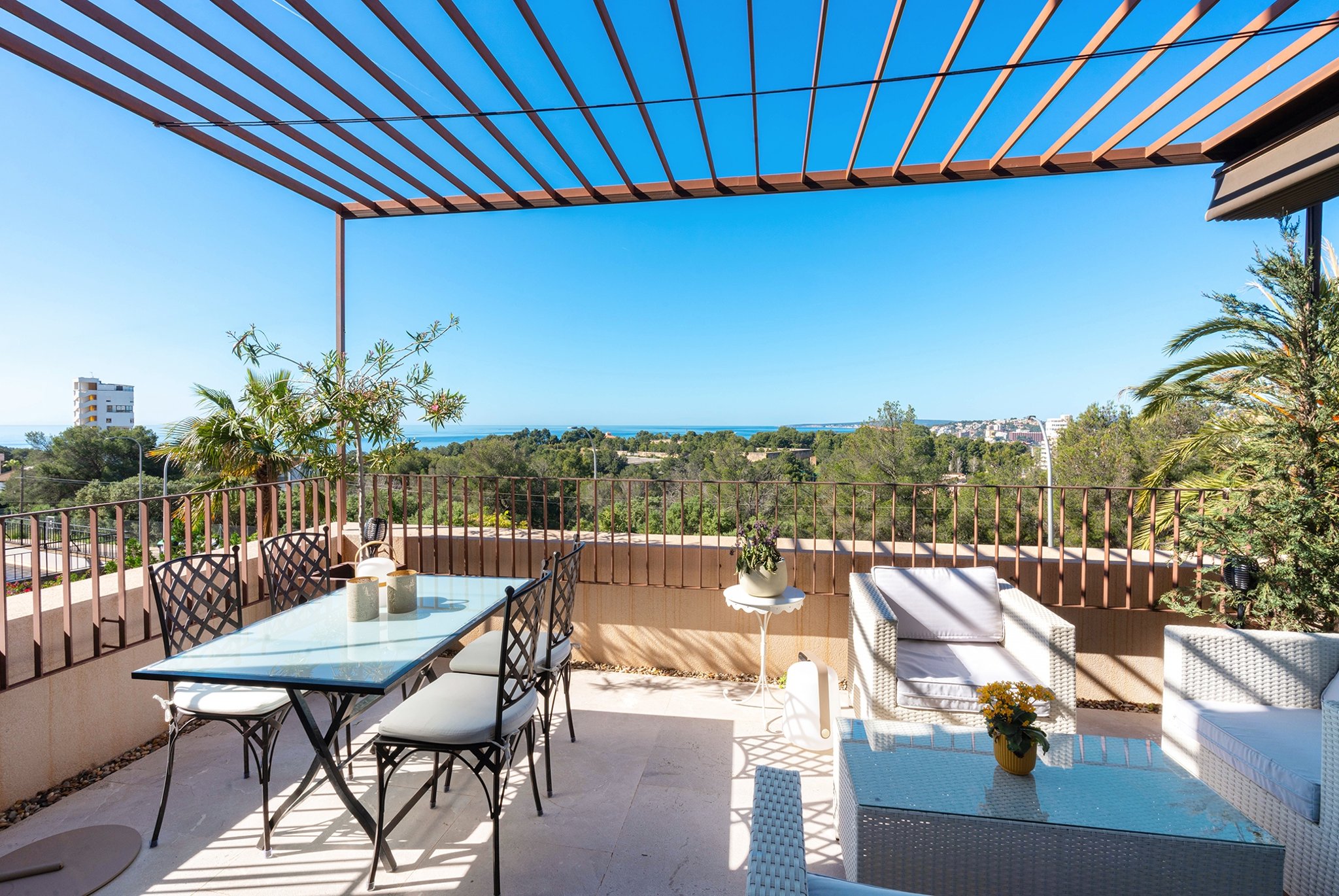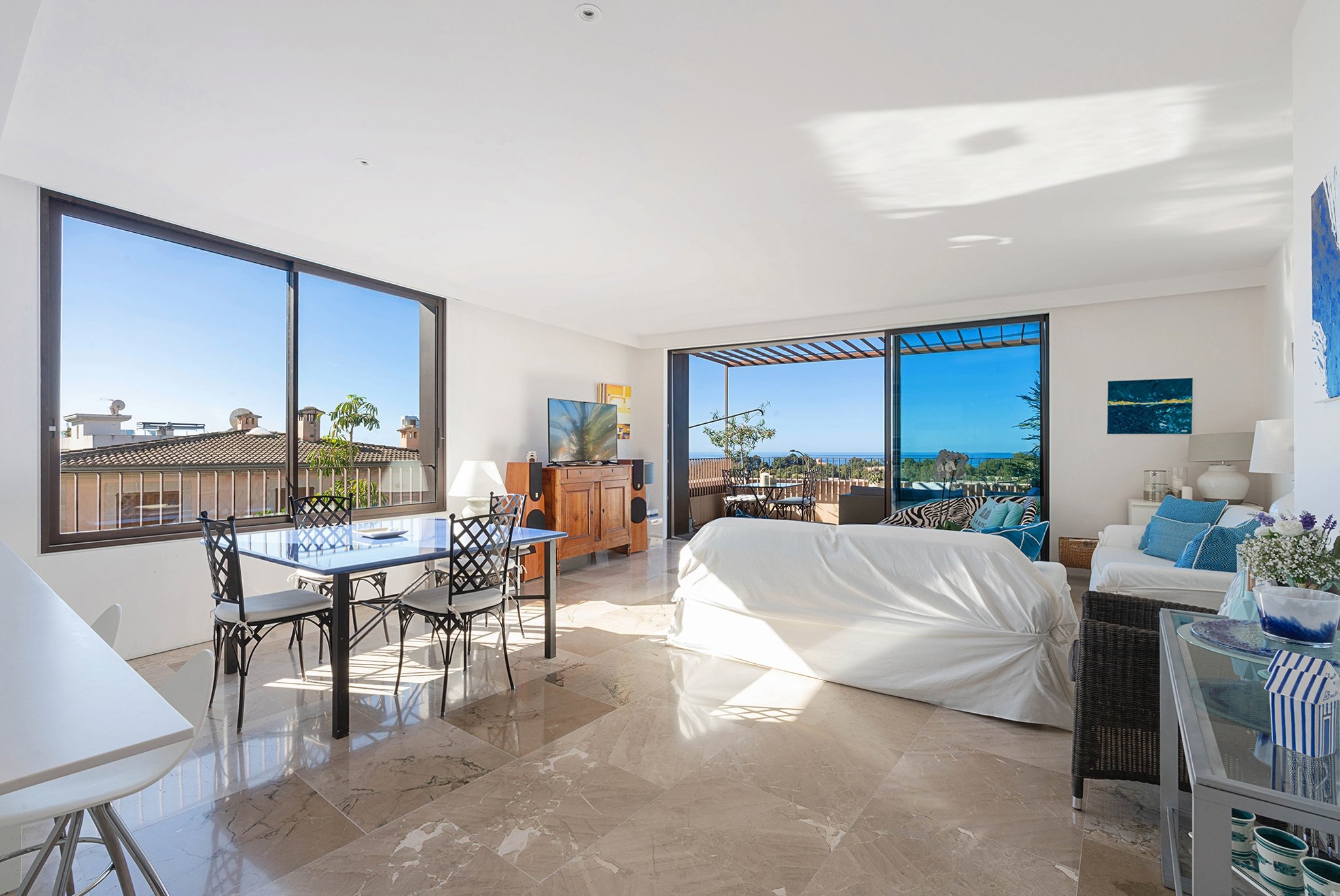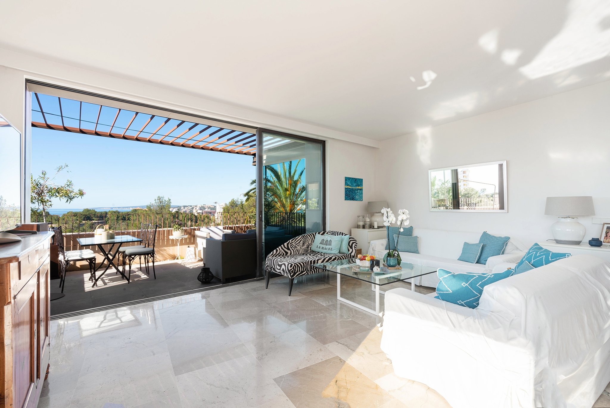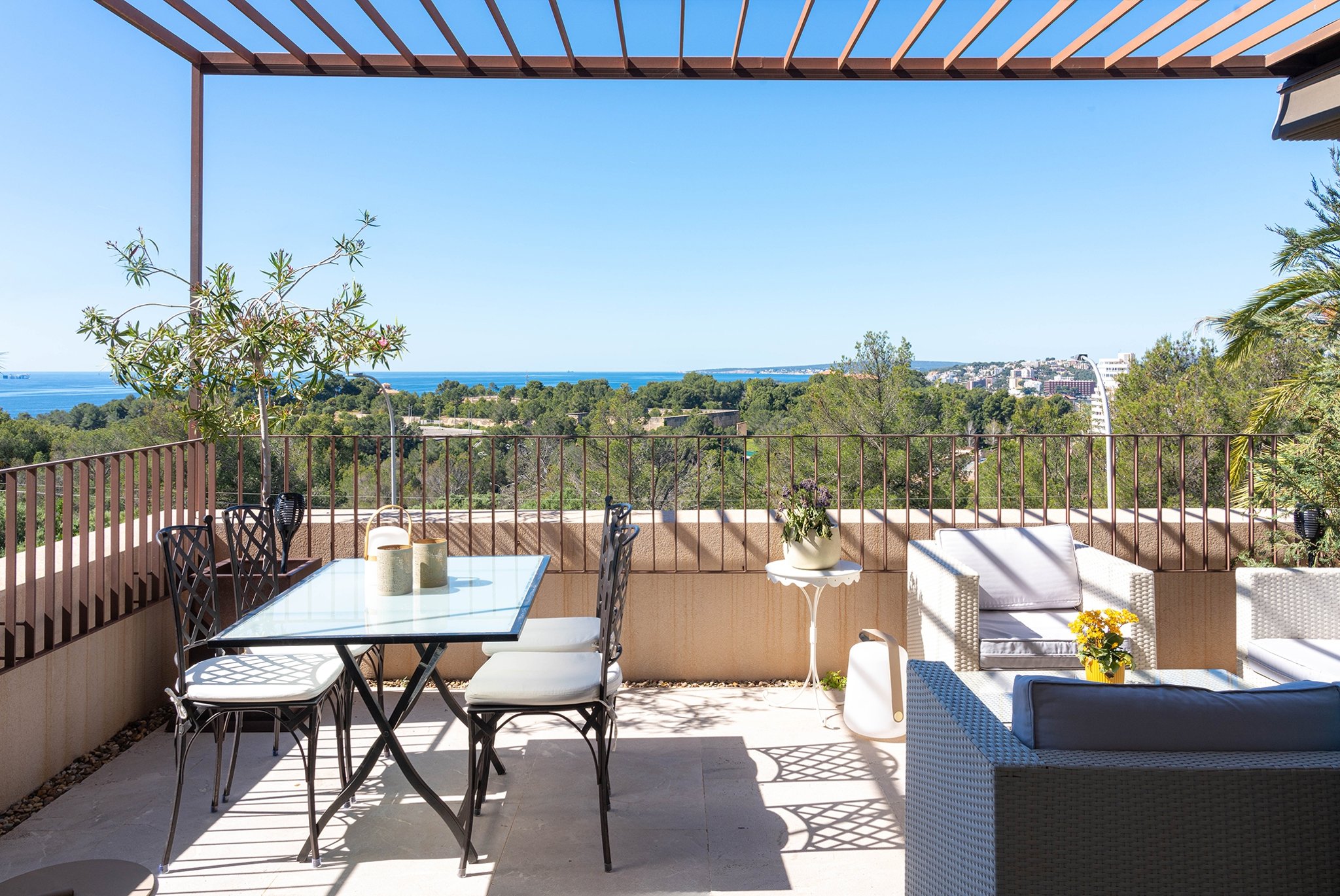 I Bonanova finner du denna ljusa och rymliga lägenhet med vacker havsutsikt. Här bor du i ett lugnt och naturnära område samtidigt som du befinner dig bara några minuter från centrala Palma.
