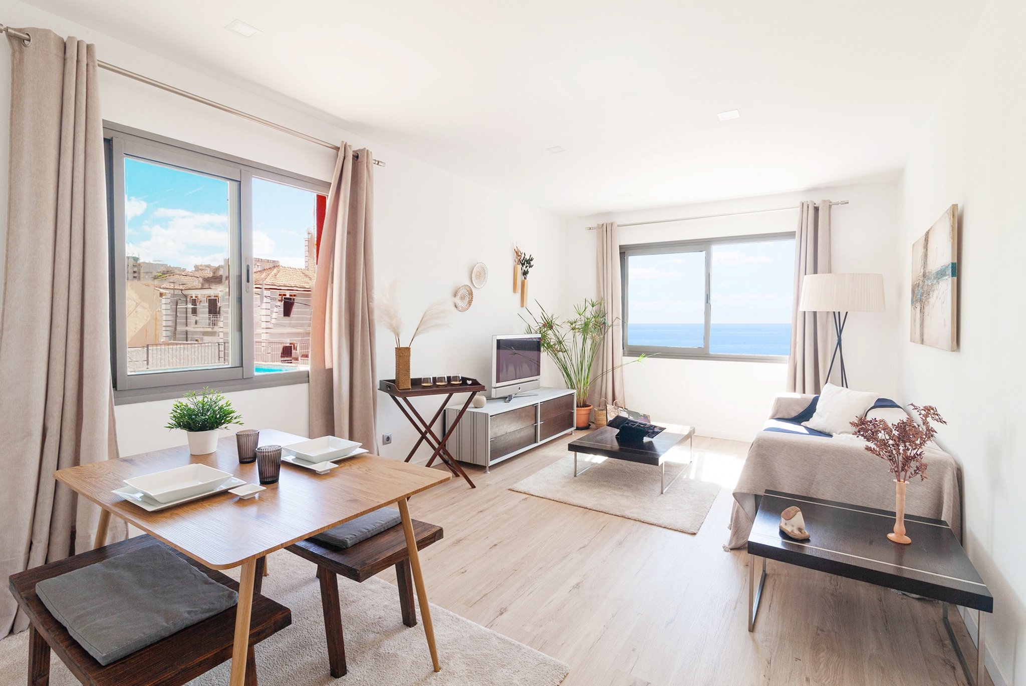 Denna nyrenoverade lägenhet ligger i San Agustín, strax utanför Palma. Här bor du på andra linjen från stranden, med närhet till restauranger, barer, aktivitetscenter och endast några minuters bilresa till Palmas centrum.