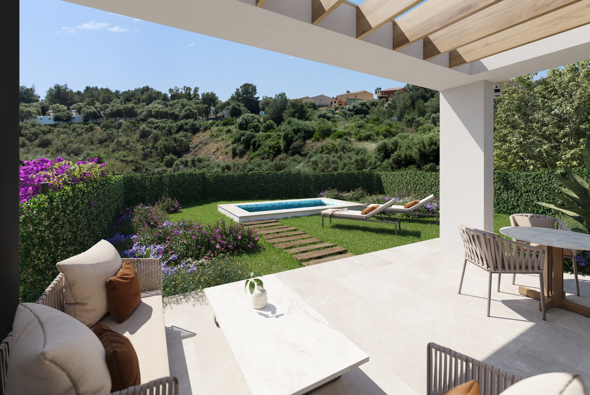 Denna villa med 2 sovrum ligger i ett nytt projekt som för närvarande byggs i Cala Romantica. Den har en boarea på 75m2 plus en privat terrass på 45 m2 och en trädgård på 200 m2.