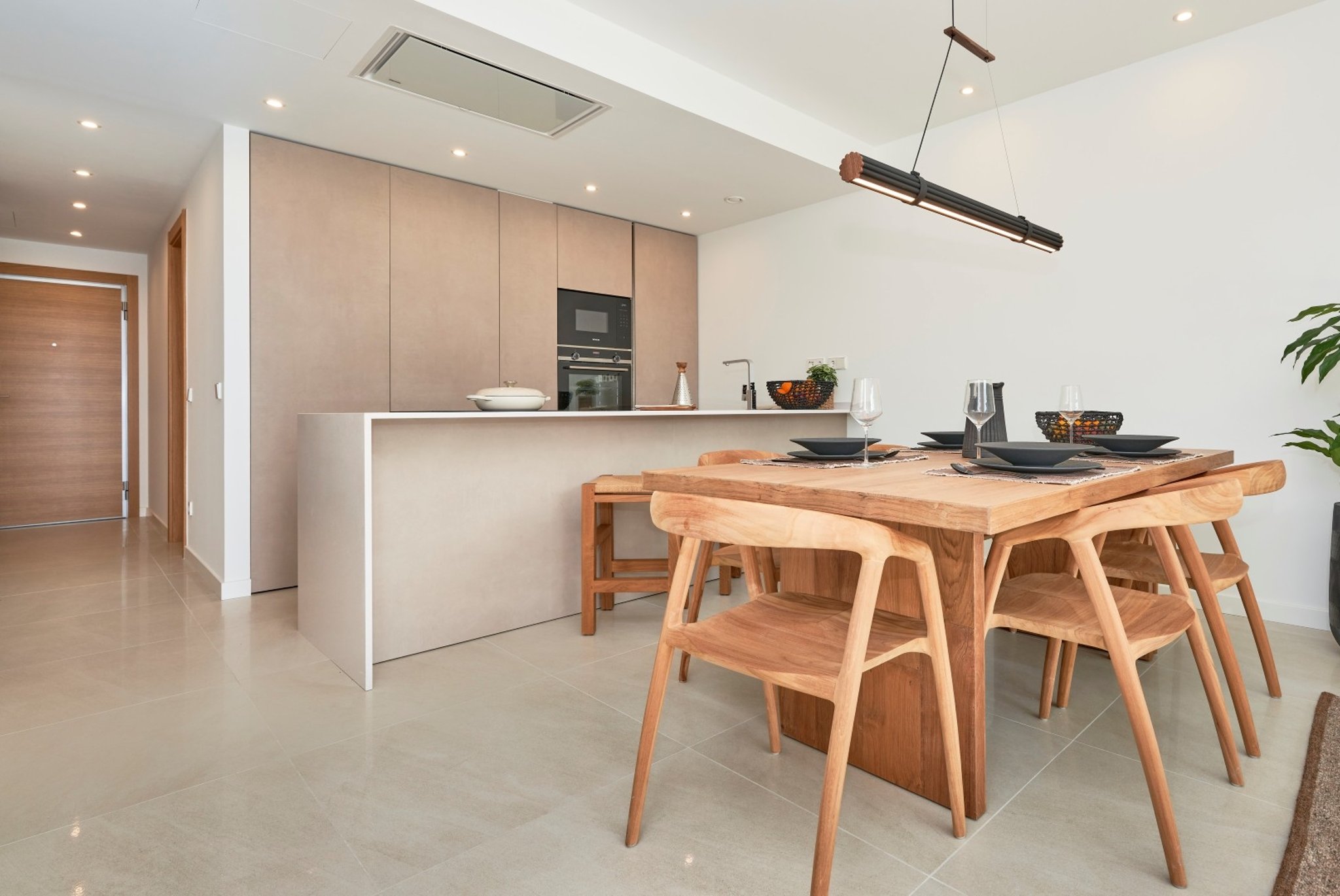 Lägenheterna är mellan 91 och 96 m² och samtliga erbjuder tre sovrum samt två fullt utrustade badrum. Det moderna köket har öppen planlösning mot vardagsrummet, varifrån terrassen nås. Stora panoramafönster och glasdörrar ger ett generöst ljusinsläpp.