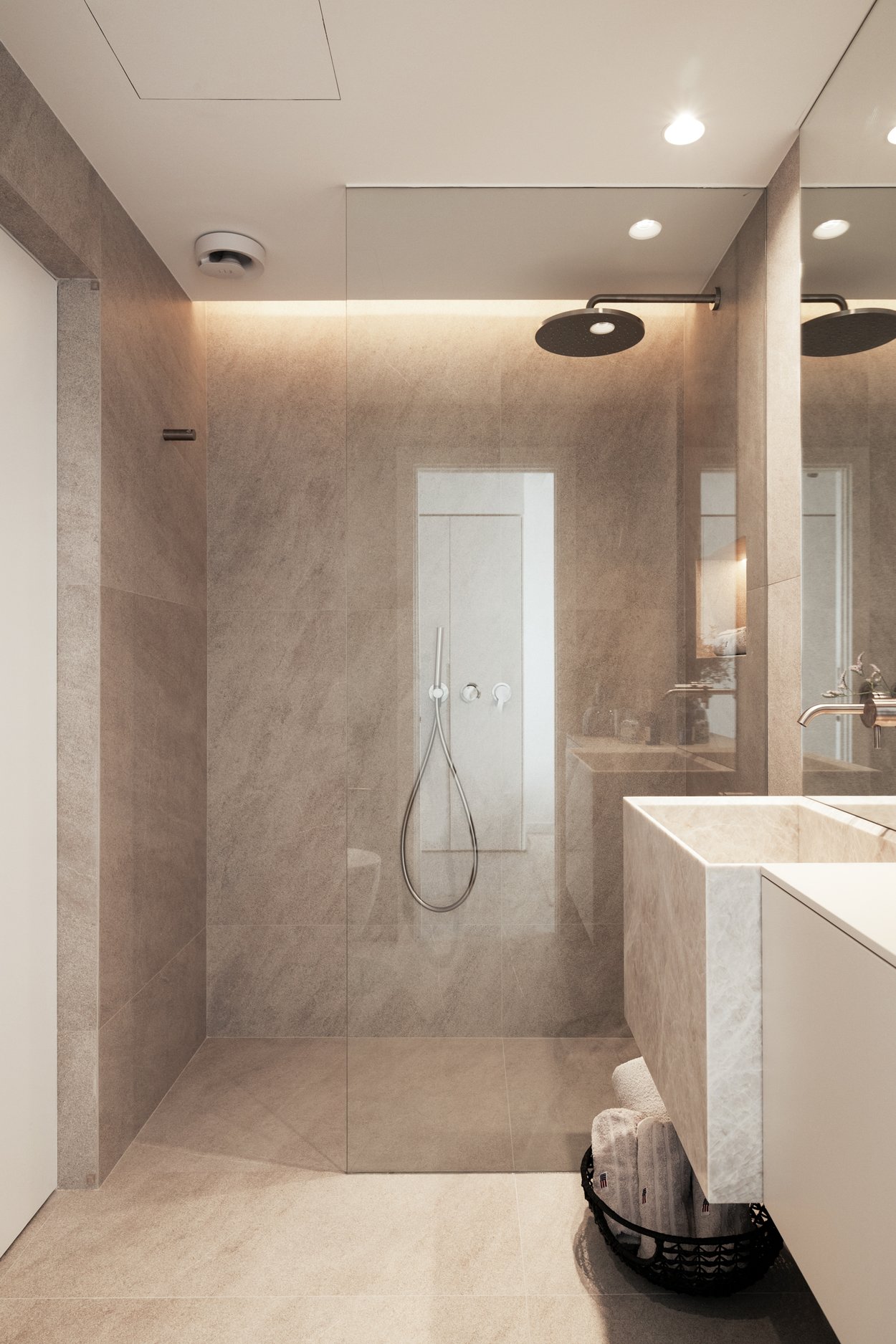 Bostaden på ca 136 m² har ett ljust och öppet vardagsrum med modernt kök och matsal, tre rofyllda sovrum med skräddarsydda garderober och eleganta badrum med Carrara-marmor och golvvärme. Master bedroom har eget badrum en suite, och köket är utrustat med högklassiga apparater för både funktion och stil.