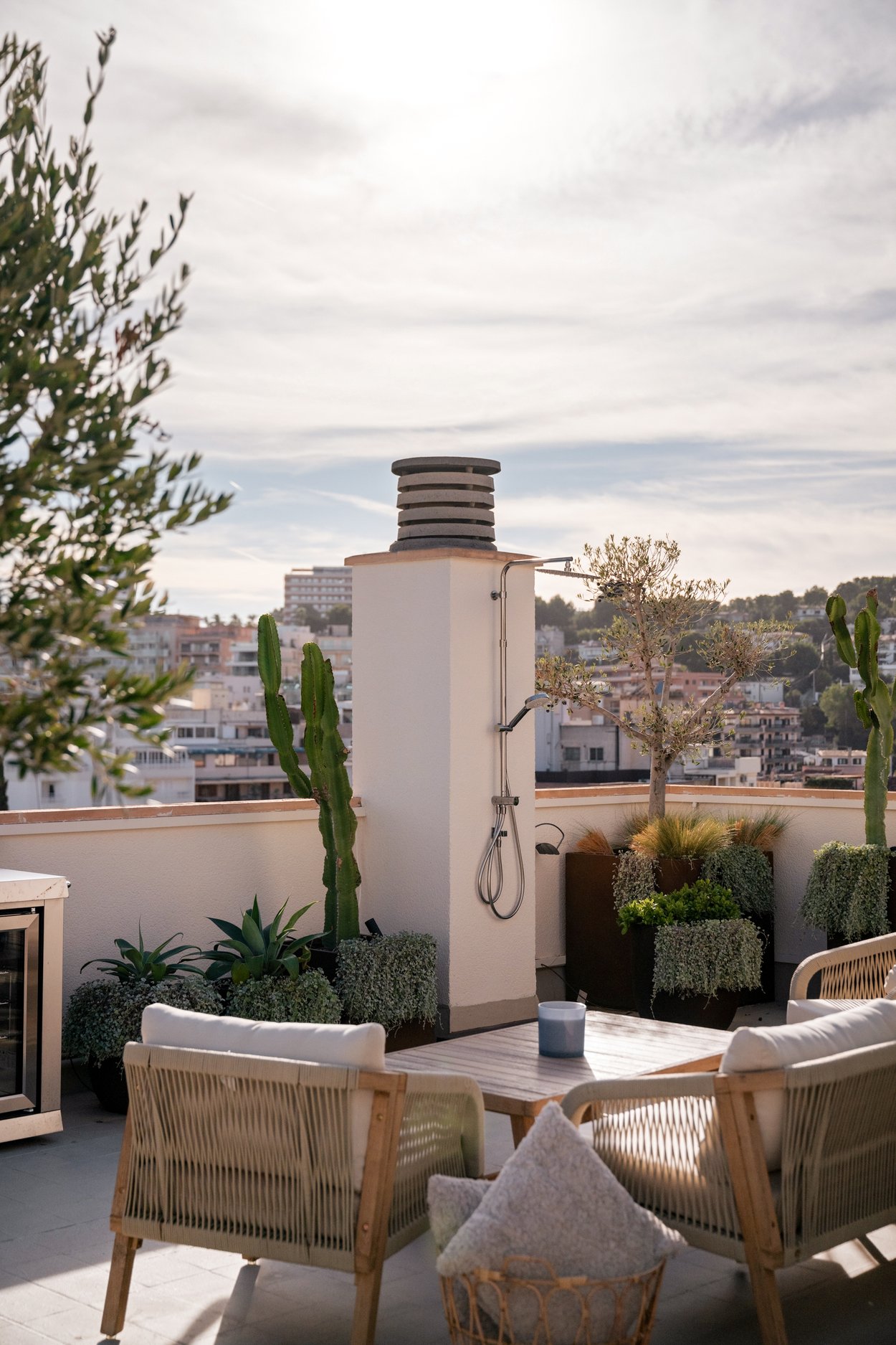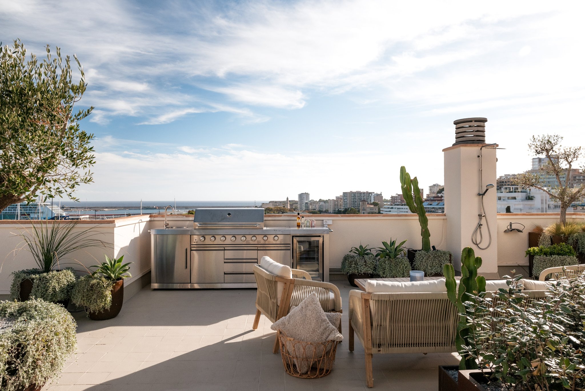 Takterrassen på ca 101 m² är perfekt för sol, middagar under stjärnorna eller avkoppling med panoramautsikt över hamnen och Palmas kustlinje. Hemmet har även har Sonos-ljudsystem, Plejd-belysning, A/C och tvättrum, samt parkeringsplats som är inkluderat i priset. Allt detta mitt i hjärtat av Palma, nära Club de Mar, restauranger, och shopping. Ett unikt hem för den som vill ha det bästa av stad och hav!