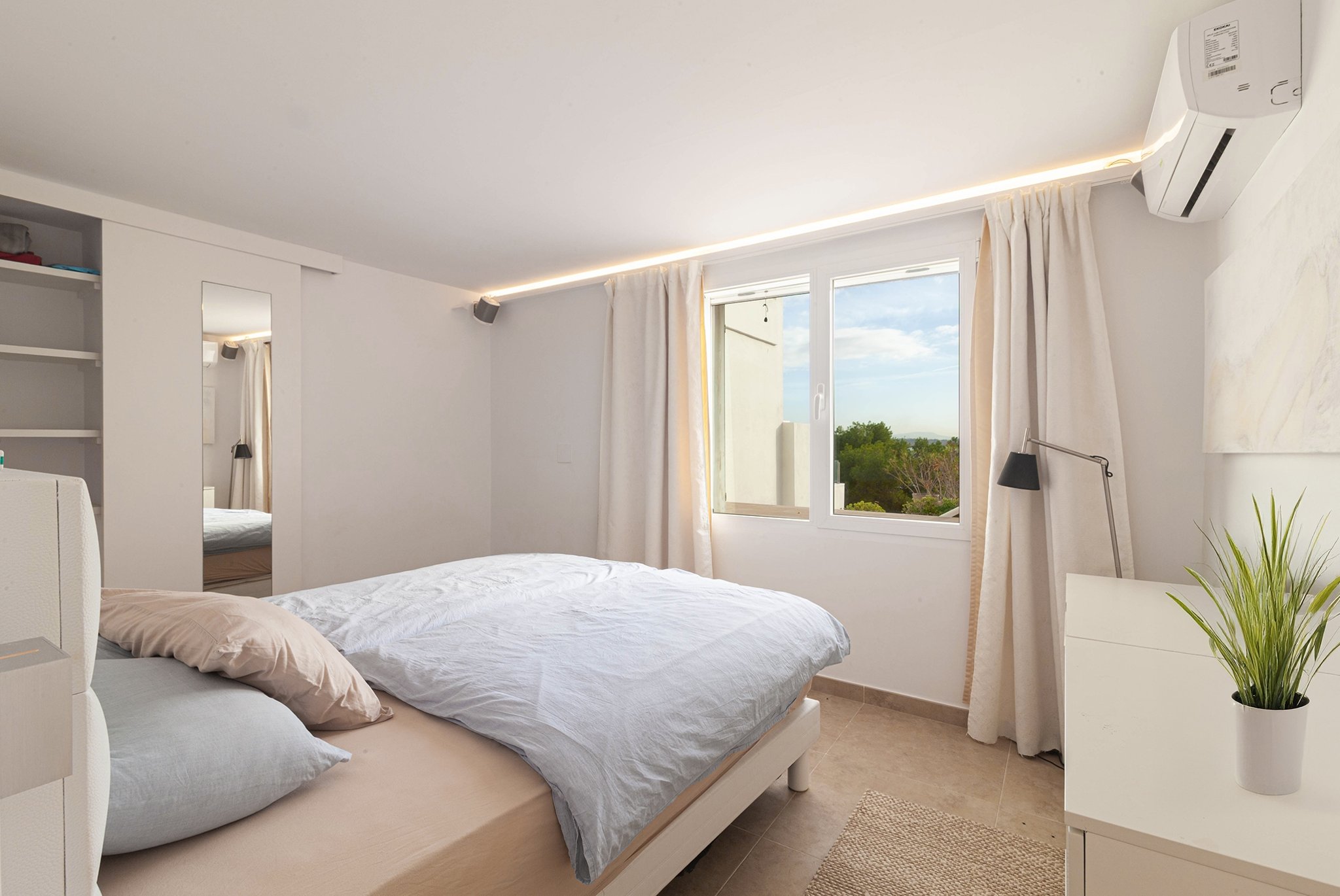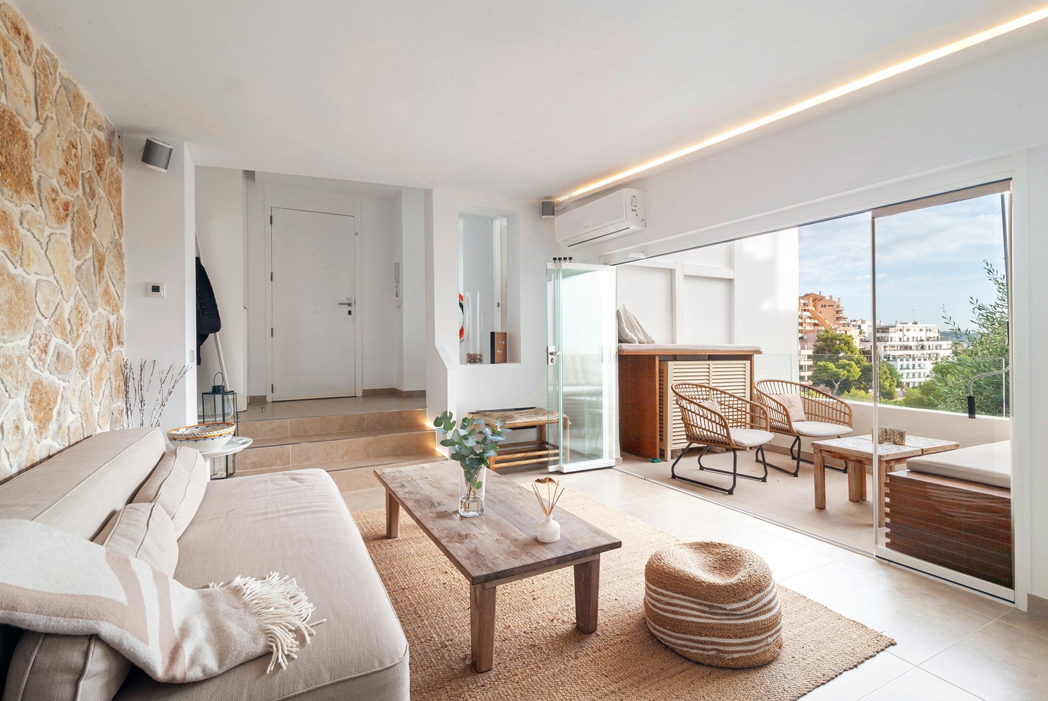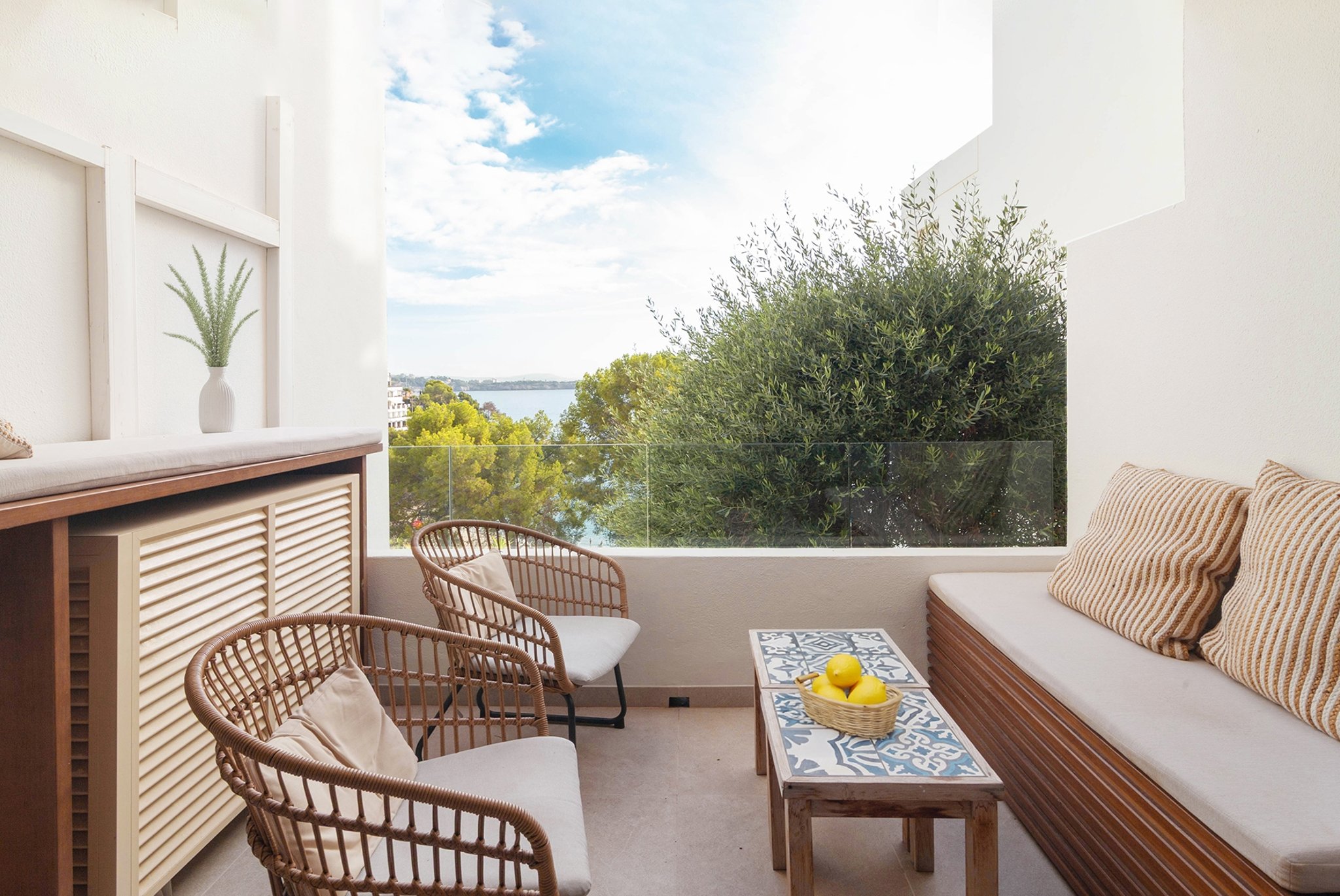 Denna helrenoverade lägenhet ligger precis framför den vackra sandstranden i Illetas och erbjuder en fantastisk utsikt över både stranden och havet. Här bor du nära Palma med restauranger, caféer, museum och butiker, samtidigt som du har sol och bad precis utanför dörren.