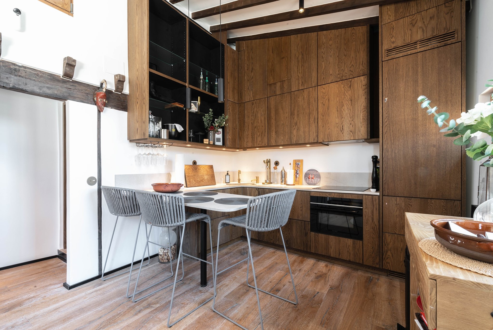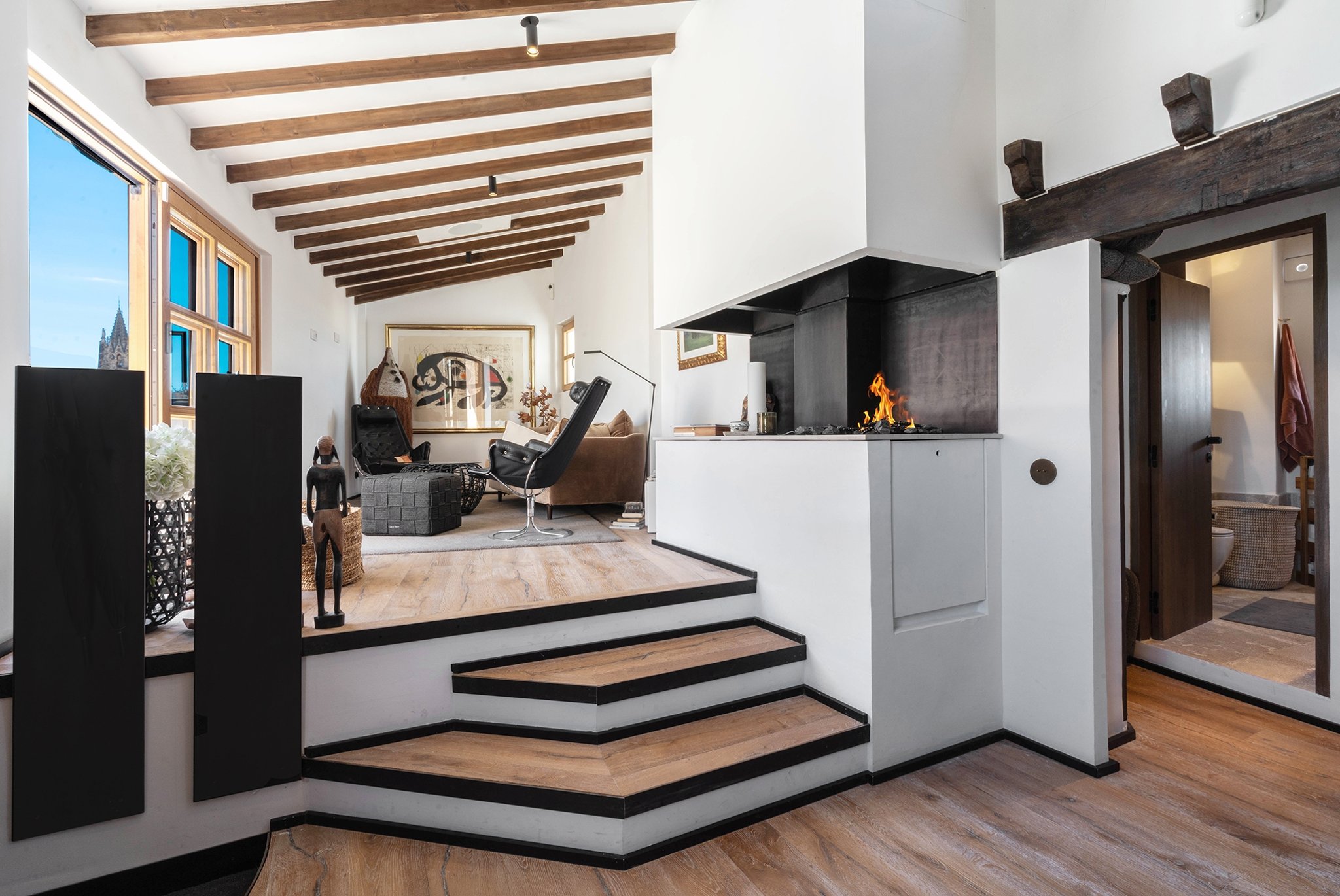 Denna nyrenoverade takvåning som ligger mitt på Plaza Cort i gamla stan är ett objekt av sällan skådat slag. Bostaden har en enorm charm, med högt i tak och synliga takbjälkar, trägolv och ett vackert platsbyggt kök i ek från Ballingslöv.